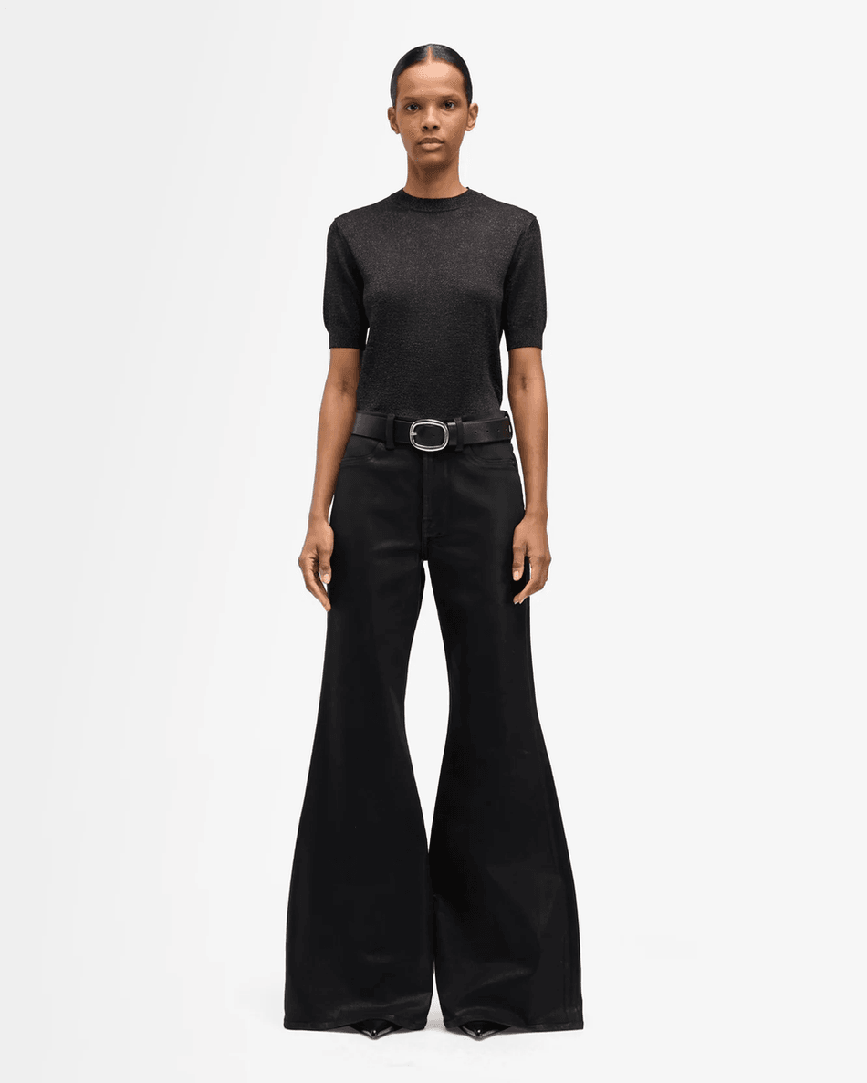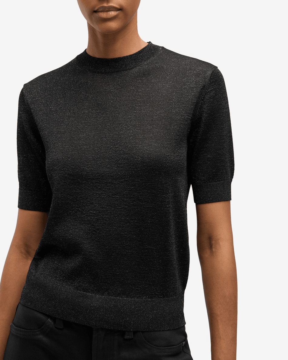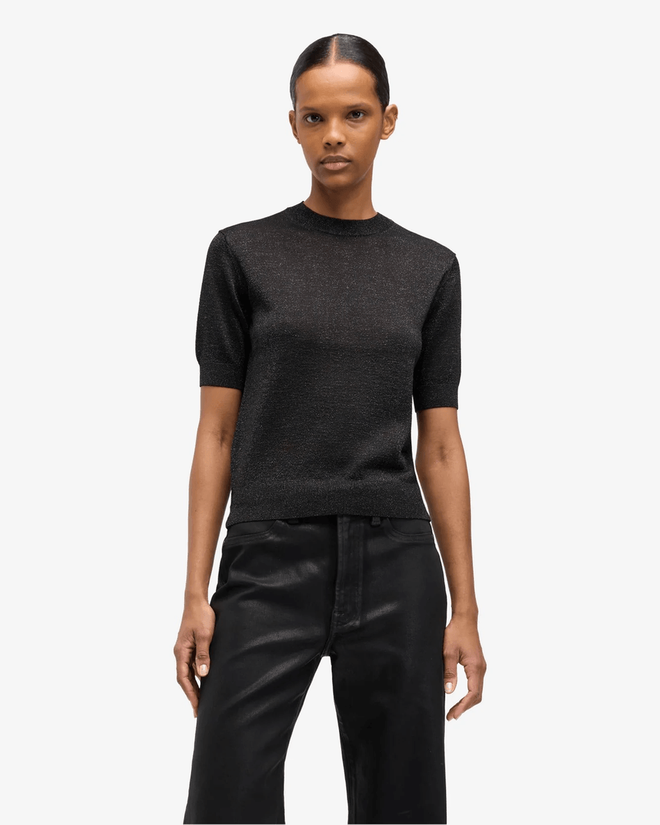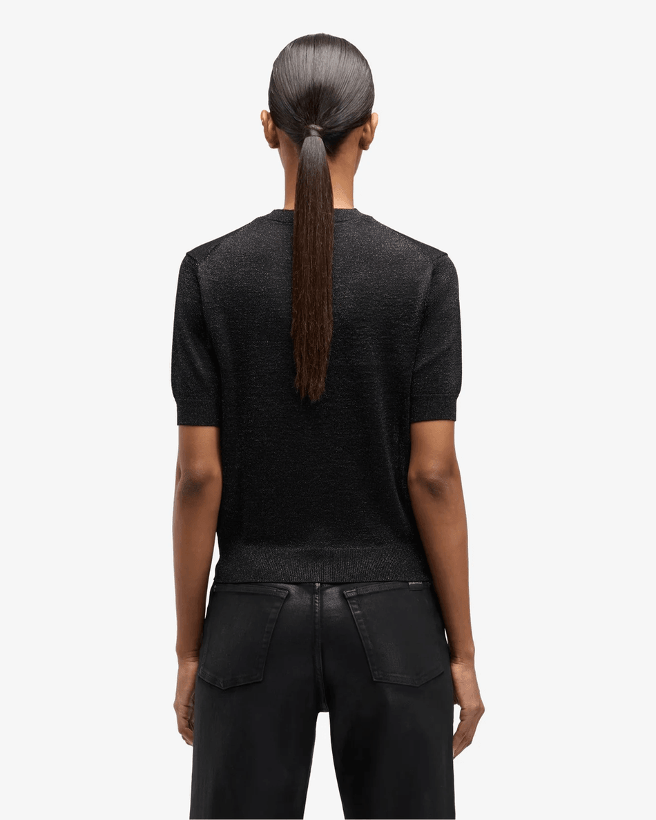 7 For All Mankind Short Sleeve Sweater in Black Lurex Black Lurex