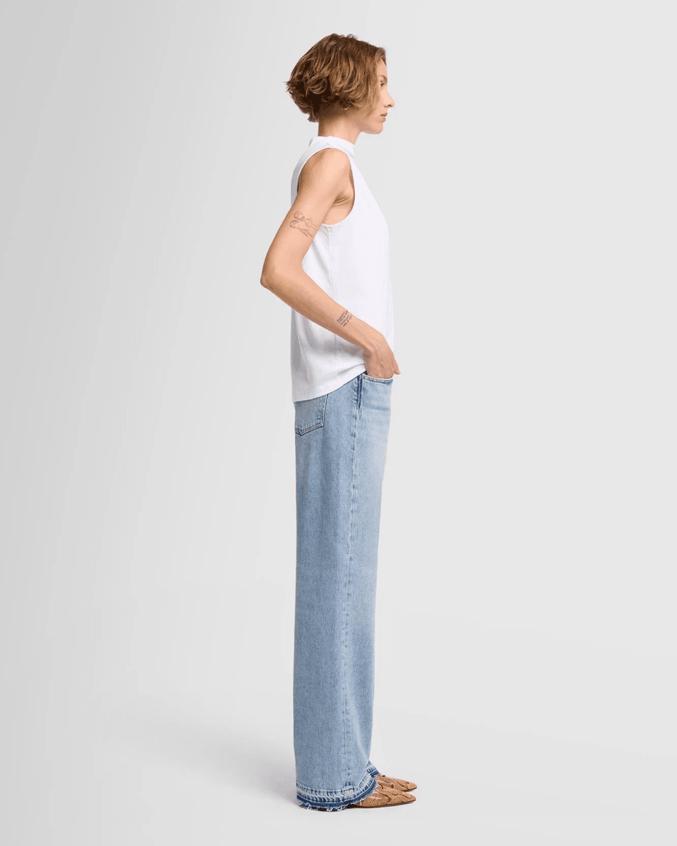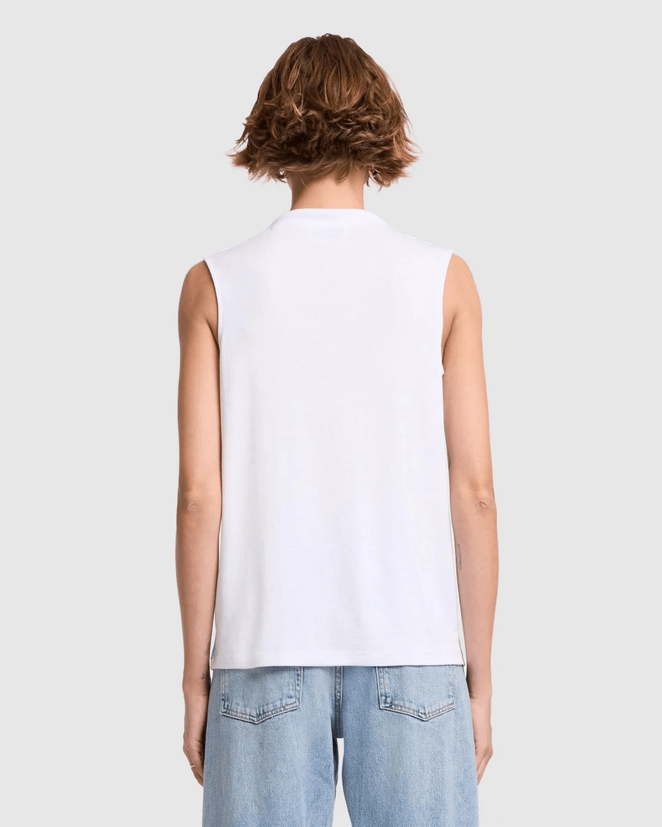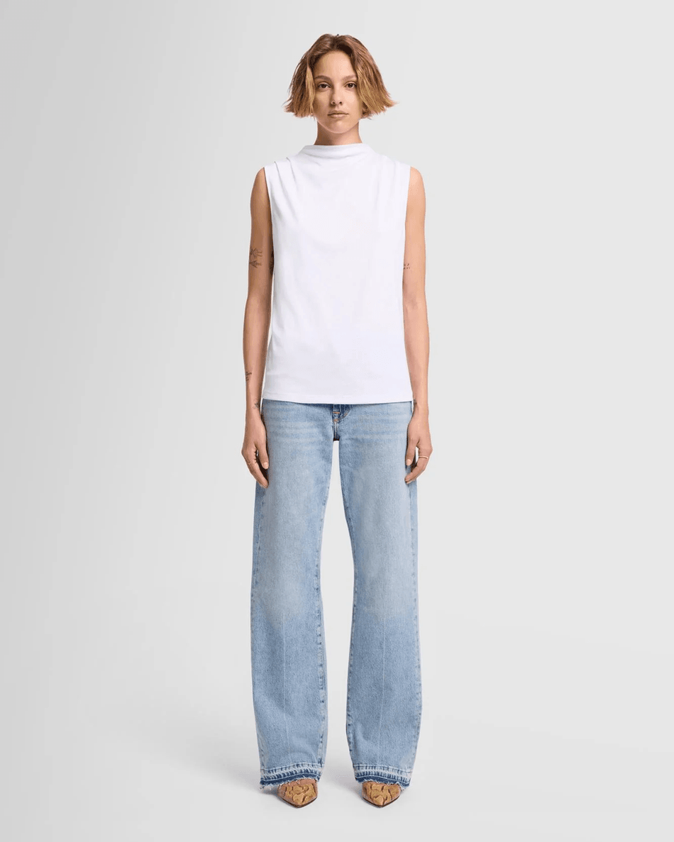 tingkatkan Lemari Pakaian Anda Dengan atasan Draped Leher Tinggi 7 For All Mankind Dalam Warna Susu. Atasan Tanpa Lengan Yang Stylish Ini Dirancang Untuk Wanita Modern Yang Menghargai Kenyamanan Dan Keanggunan. Dengan Leher Tinggi Yang Chic Dan Siluet Yang Mengalir, Atasan Ini Sempurna Untuk Setiap Kesempatan.