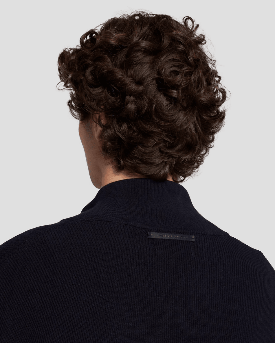 Elevate your wardrobe with the 7 For All Mankind Luxe Performance Zip Sweater in Navy. This stylish and functional piece is designed for those who appreciate luxury and performance in their everyday wear. With its sophisticated ribbed knit fabric, this sweater combines comfort and elegance effortlessly.