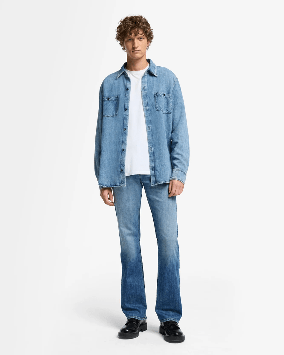 Experience unparalleled comfort and style with the 7 For All Mankind Airweft Brett in Draft Draft. This medium blue wash bootcut jean is designed to provide a relaxed fit without feeling oversized, making it the perfect addition to your wardrobe.