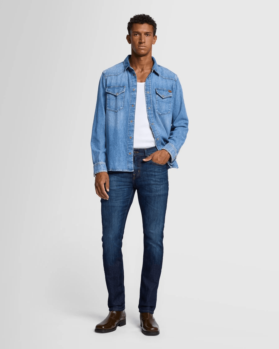 Upgrade your denim collection and embrace the perfect fit. Order your pair of 7 For All Mankind Airweft Slimmy in Waking Hours today!