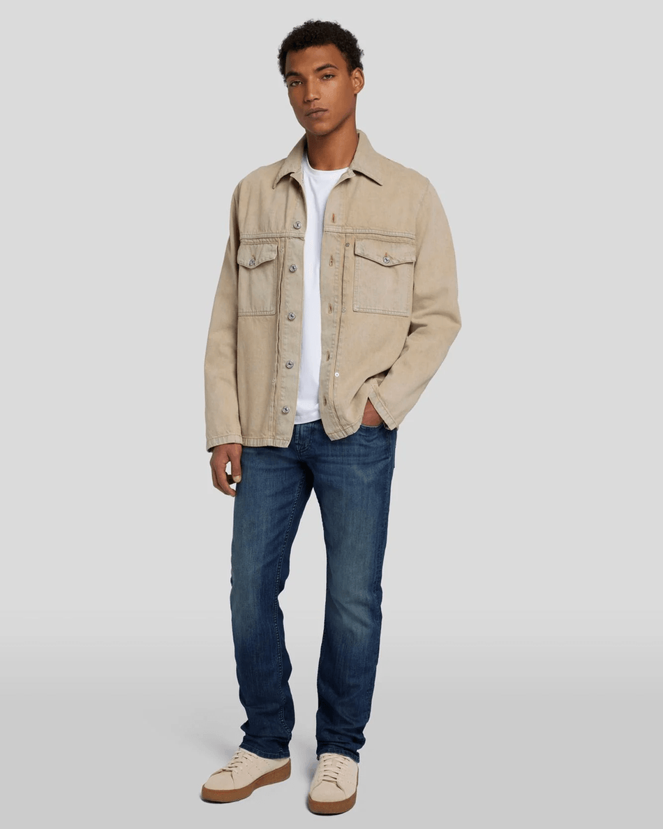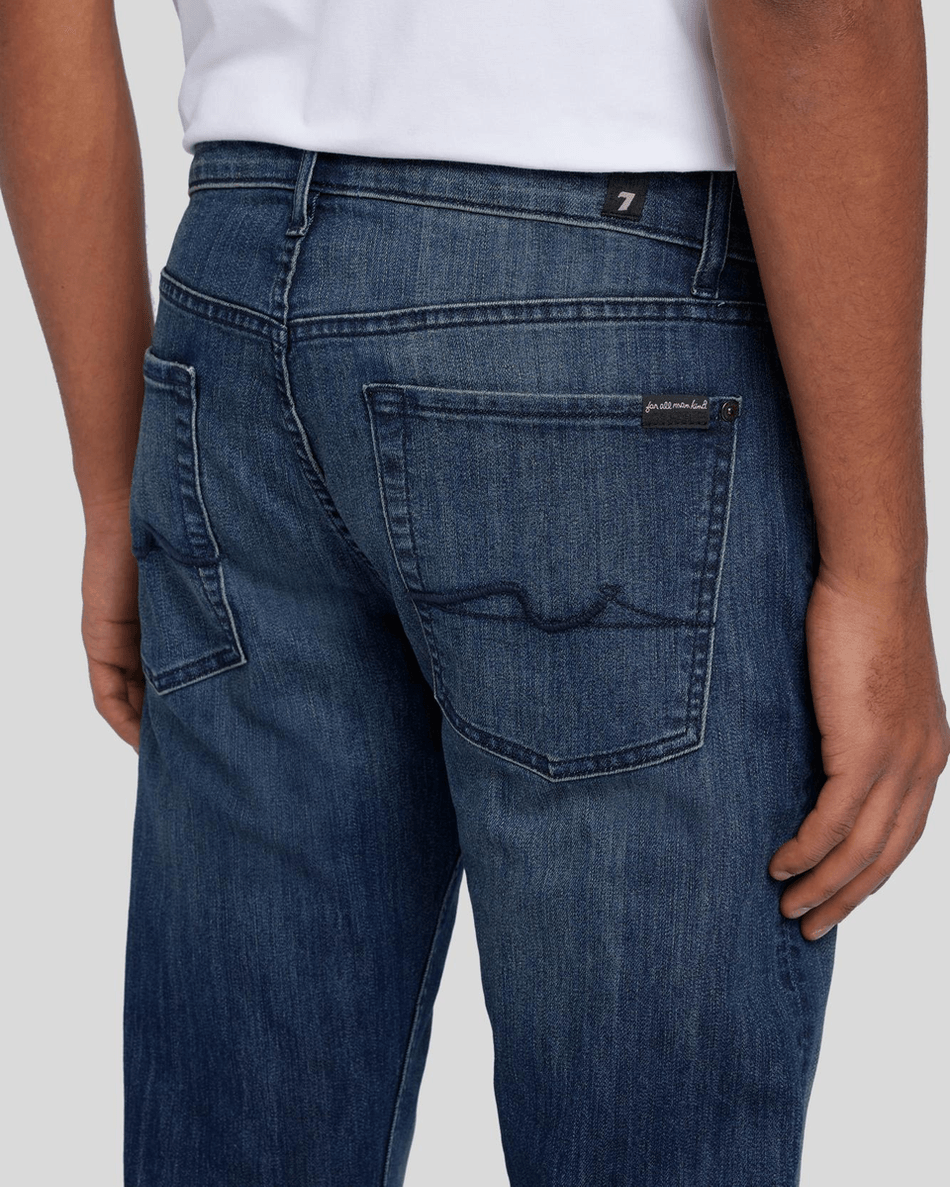 Elevate your denim game with the 7 For All Mankind Airweft The Straight in Breakthrough. This classic straight fit jean is designed for those who value both comfort and style. Crafted from innovative Airweft Japanese denim, these jeans are lightweight yet incredibly durable, making them the perfect choice for any occasion.