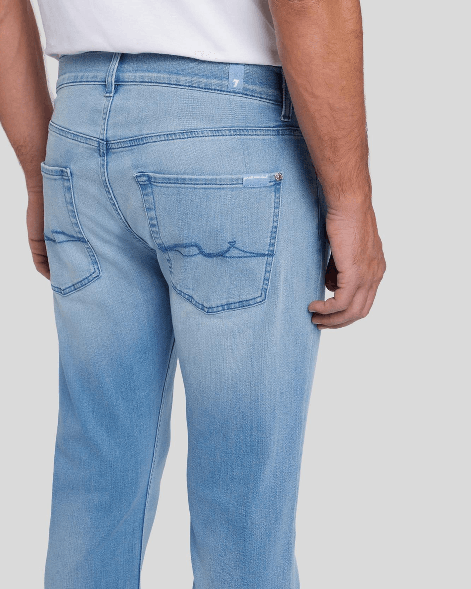 Elevate your denim collection with the 7 For All Mankind Brett Bootcut in Light Bay. This contemporary bootcut jean combines style and comfort, making it your go-to choice for any occasion. With a relaxed fit that flatters your figure without being baggy, the Brett is designed for all-day wear.