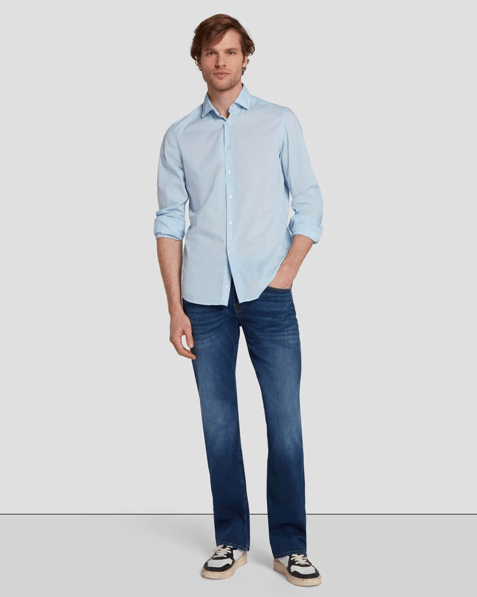 Elevate your style with the 7 For All Mankind Brett in Believer Believer. This modern bootcut jean combines a relaxed fit with premium comfort, making it the essential choice for every man seeking versatility and flair in his wardrobe.