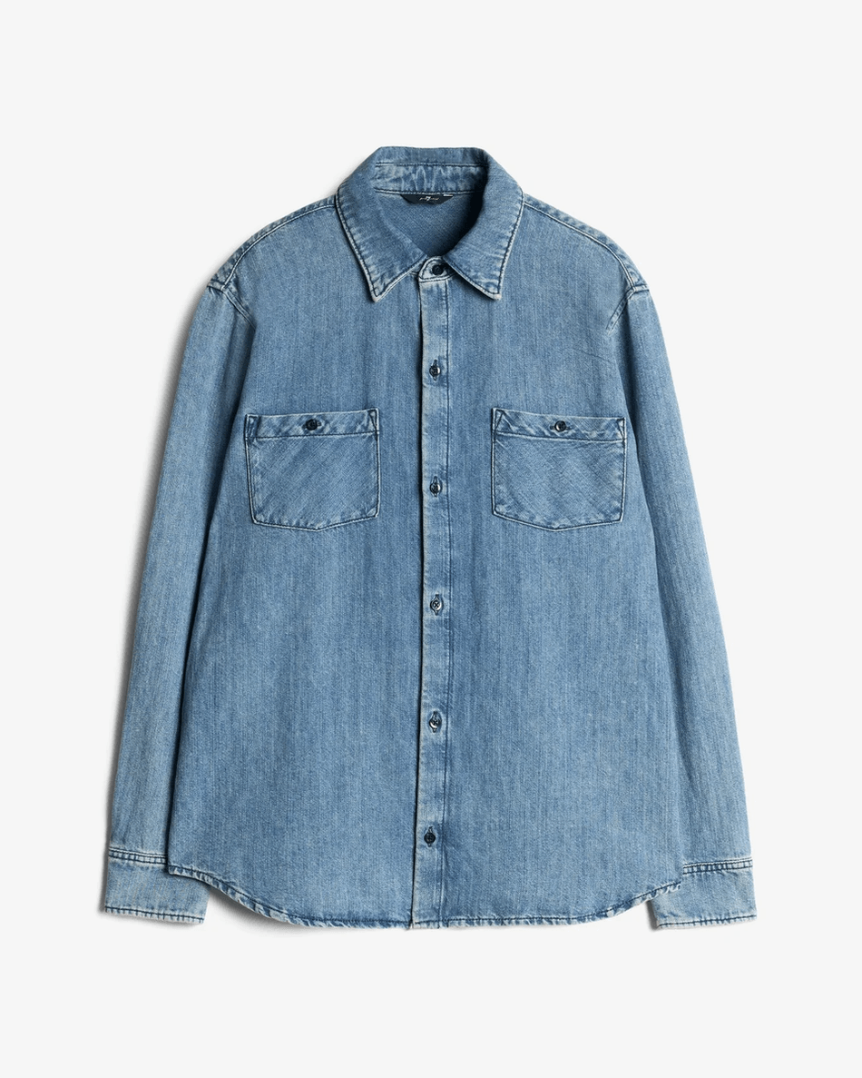 Discover the 7 For All Mankind Denim Linen Overshirt in Station Station