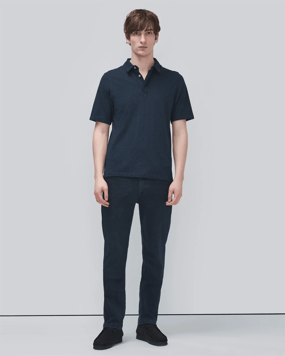 Elevate your wardrobe with the 7 For All Mankind Earthkind Stretch Tek Slimmy in Navy. This innovative denim combines exceptional stretch with a commitment to sustainability, making it the perfect choice for the eco-conscious man who values style.