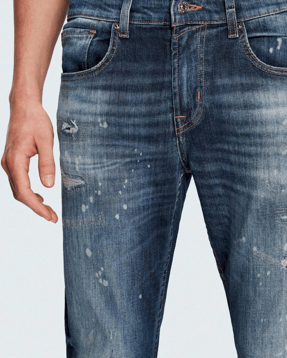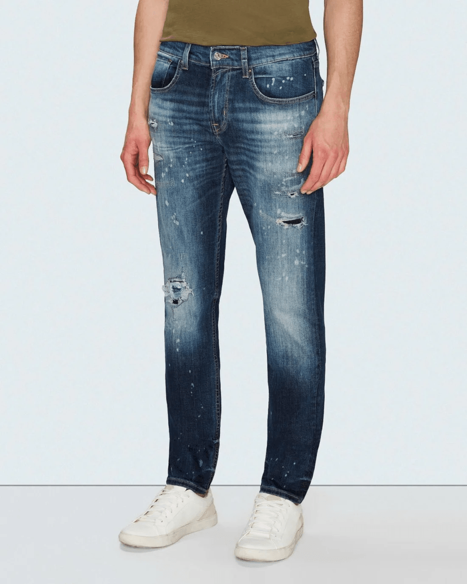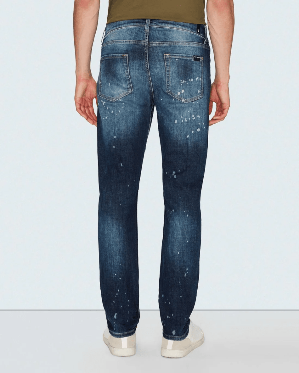 Discover the 7 For All Mankind EarthKind Stretch Tek Slimmy Tapered in Downtown Indigo