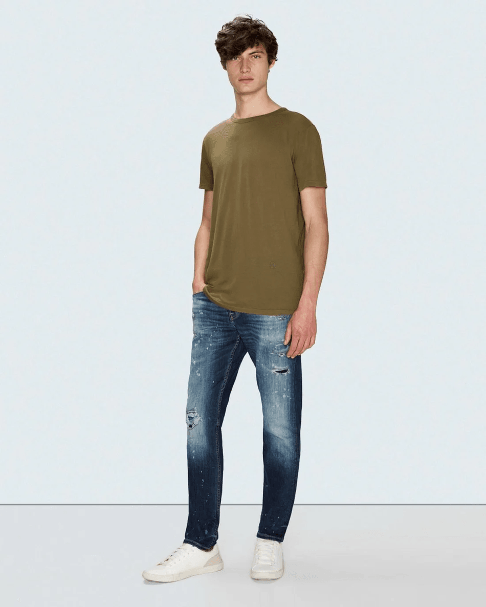 - Authentic detailing with heavy fading, whiskering, and rip and repair spots