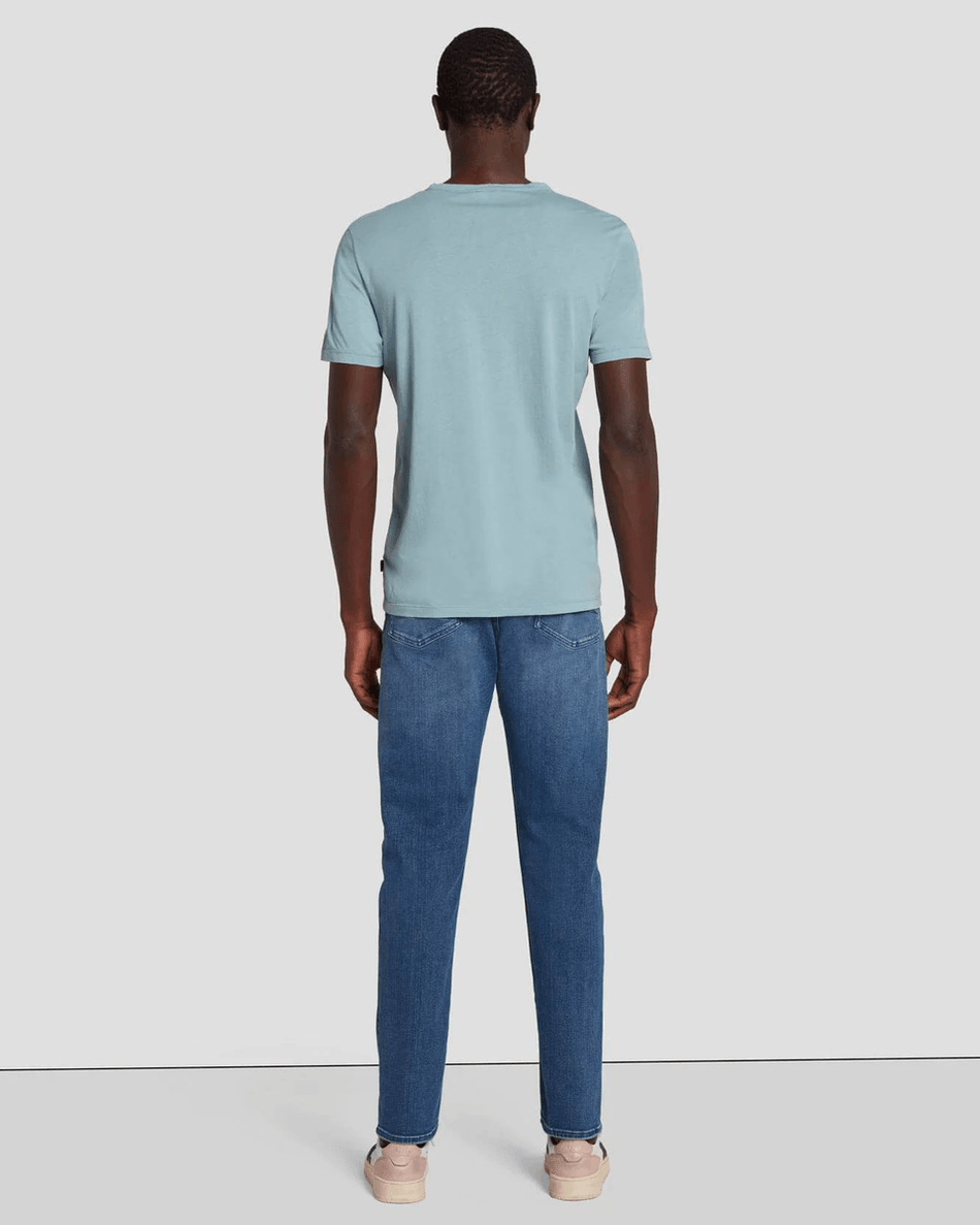 Elevate your denim collection with the 7 For All Mankind EarthKind Stretch Tek Slimmy Tapered in Maze Maze. This modern take on our bestselling slimmy jeans features a stylishly tapered design that enhances your silhouette while providing unmatched comfort.