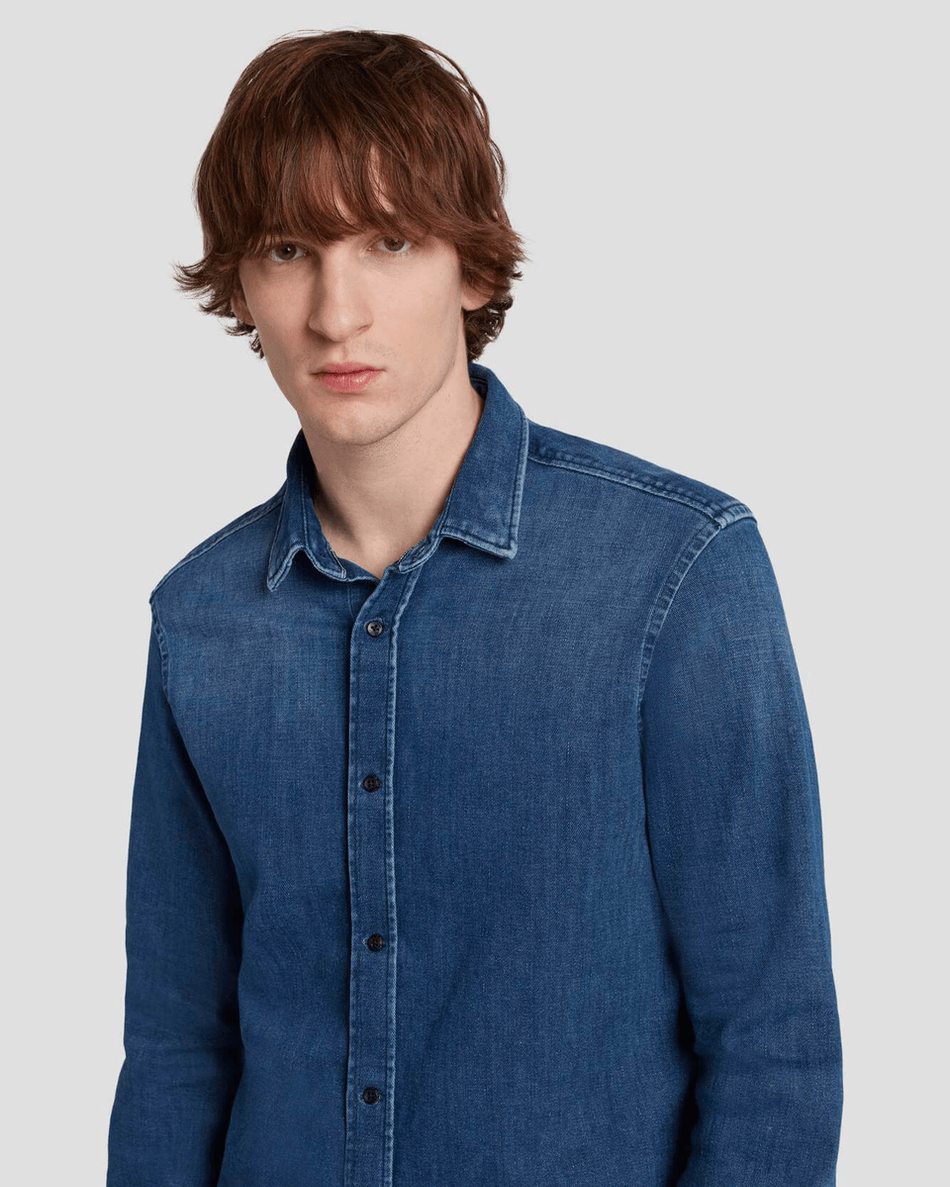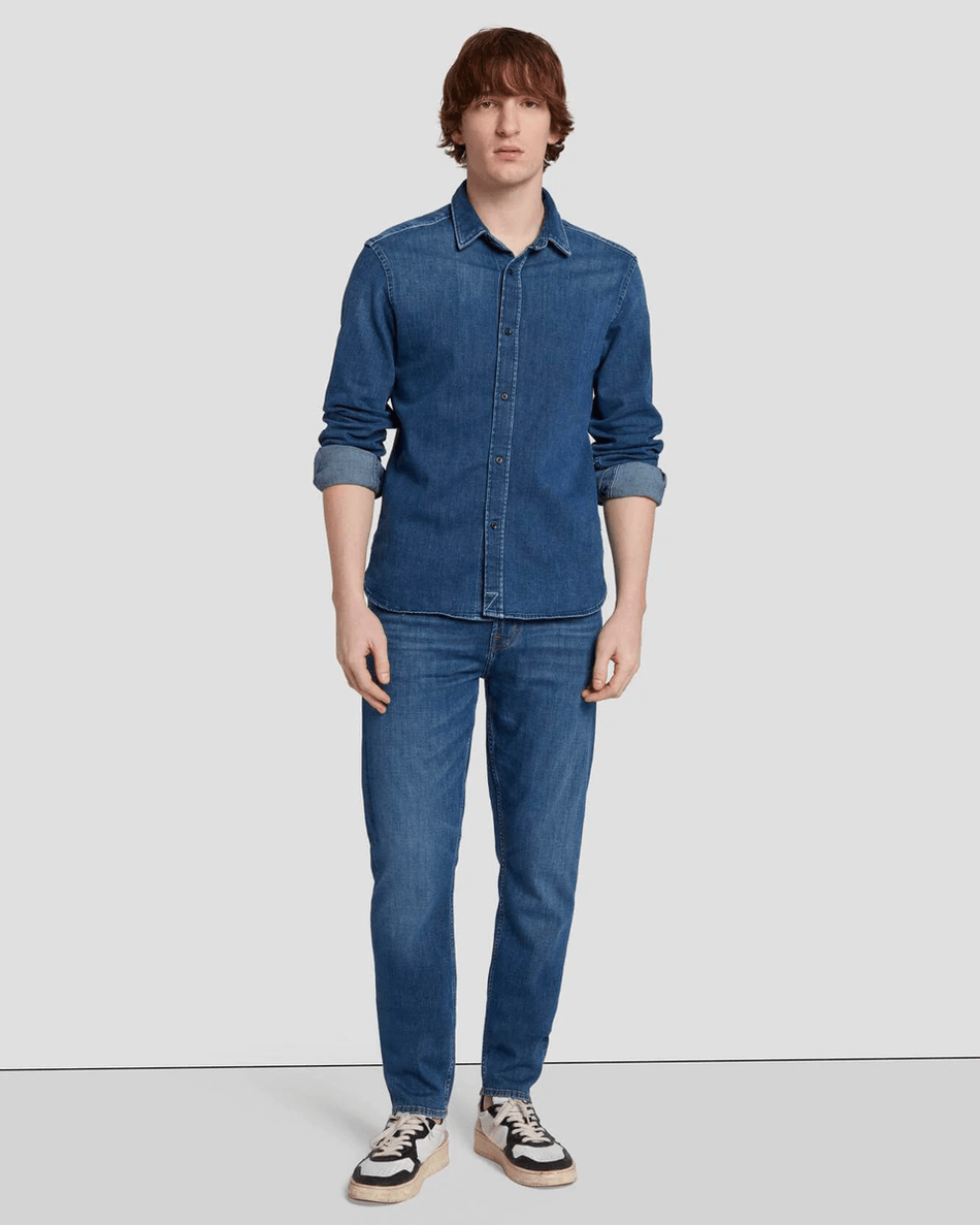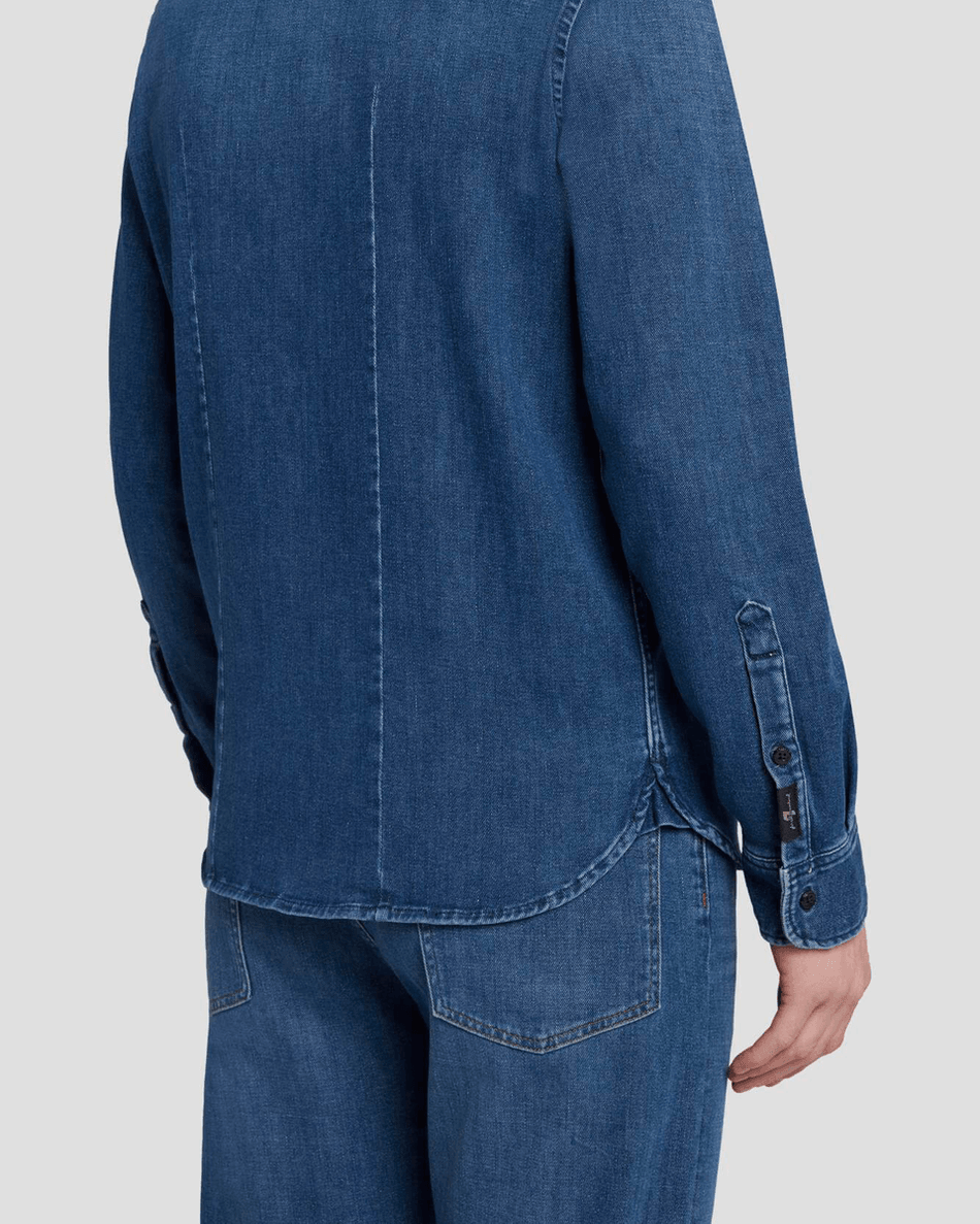 Discover the 7 For All Mankind Left Hand Denim Shirt in Evasion Evasion