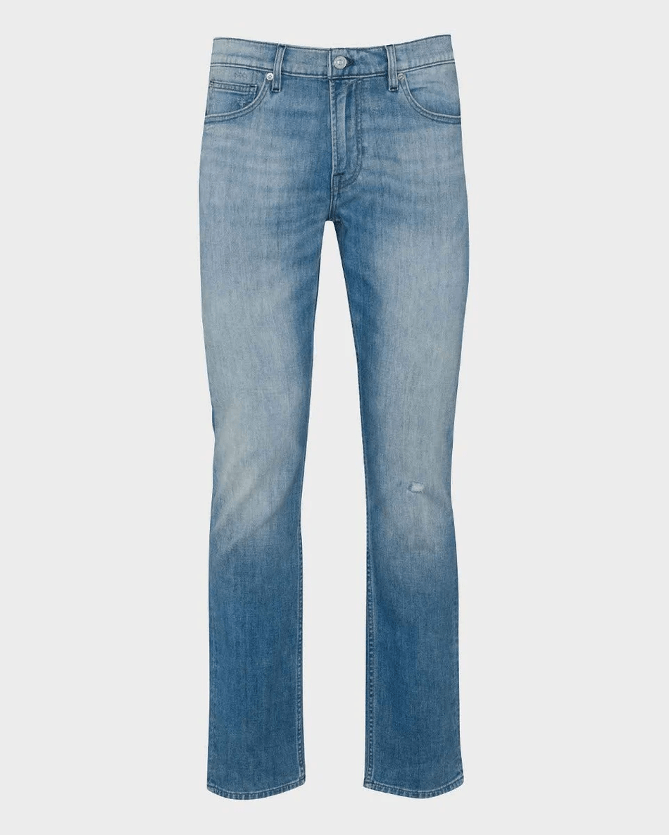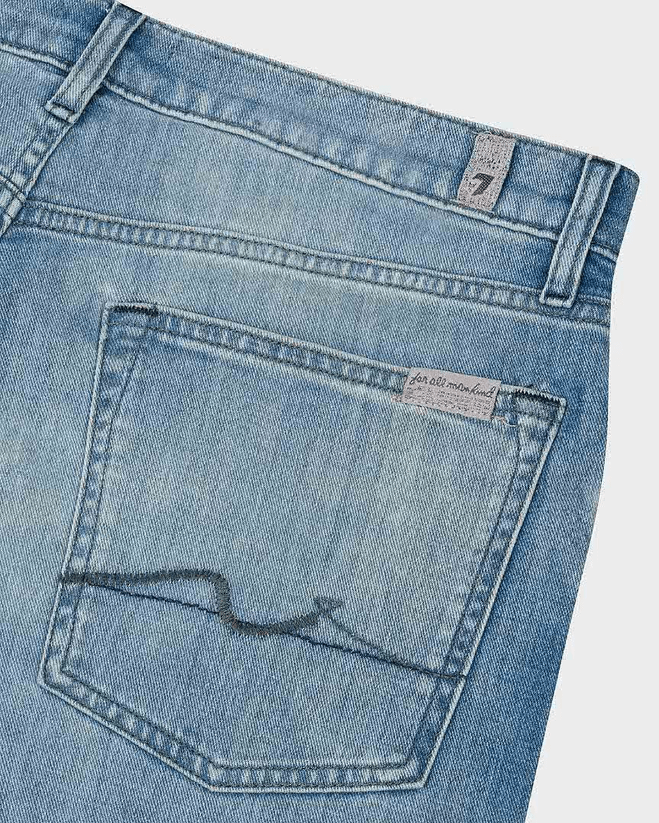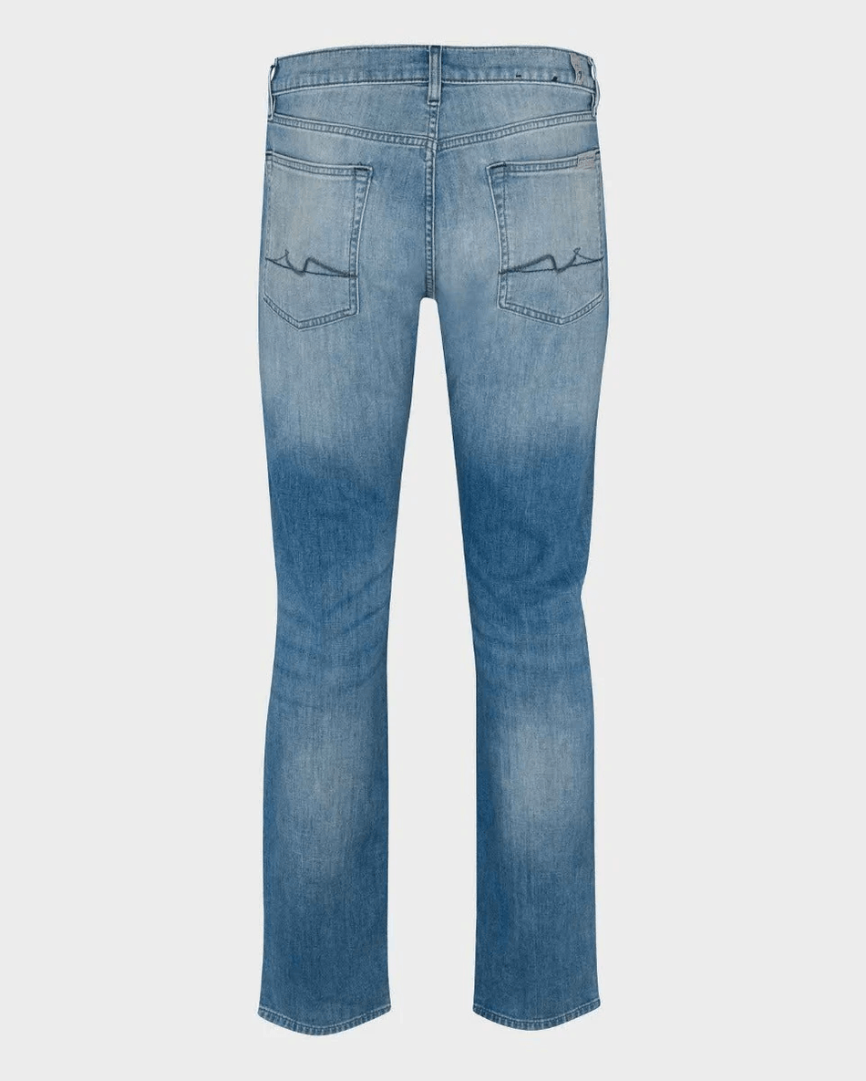 The 7 For All Mankind Luxe Performance Slimmy in New River is designed for the modern individual who values both style and comfort. The brushed blue wash is complemented by fading down the thigh and seat, creating a stylishly rugged look. The hint of distressed wear adds an edge, making these jeans a versatile addition to your wardrobe.