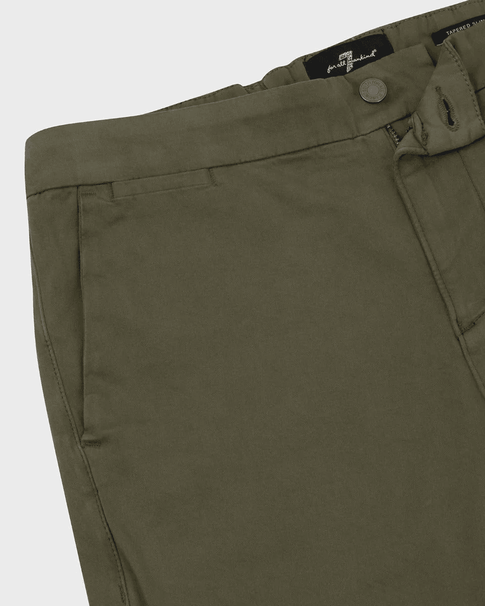 7 For All Mankind Luxe Performance Slimmy Tapered Chino in Sateen Olive Sateen Olive
