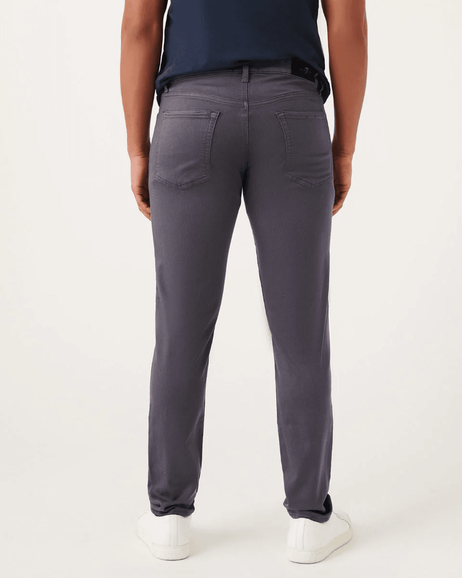 Elevate your style with the 7 For All Mankind Luxe Sport Paxtyn Skinny in Gunmetal. This modern skinny fit is designed to create a sleek, elongated silhouette that complements any wardrobe. Crafted from innovative high-stretch performance twill, these jeans are perfect for those who value both fashion and functionality.