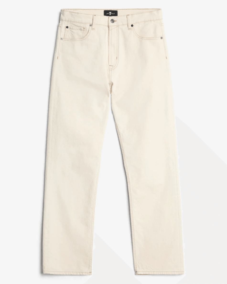 Elevate your denim collection with the 7 For All Mankind Multicount Modern Straight in Repose. This stylish straight-fit jean features a clean cream shade that enhances your wardrobe with a crisp, modern silhouette. Experience the perfect balance of relaxation and tailoring, making these jeans your go-to choice for any occasion.