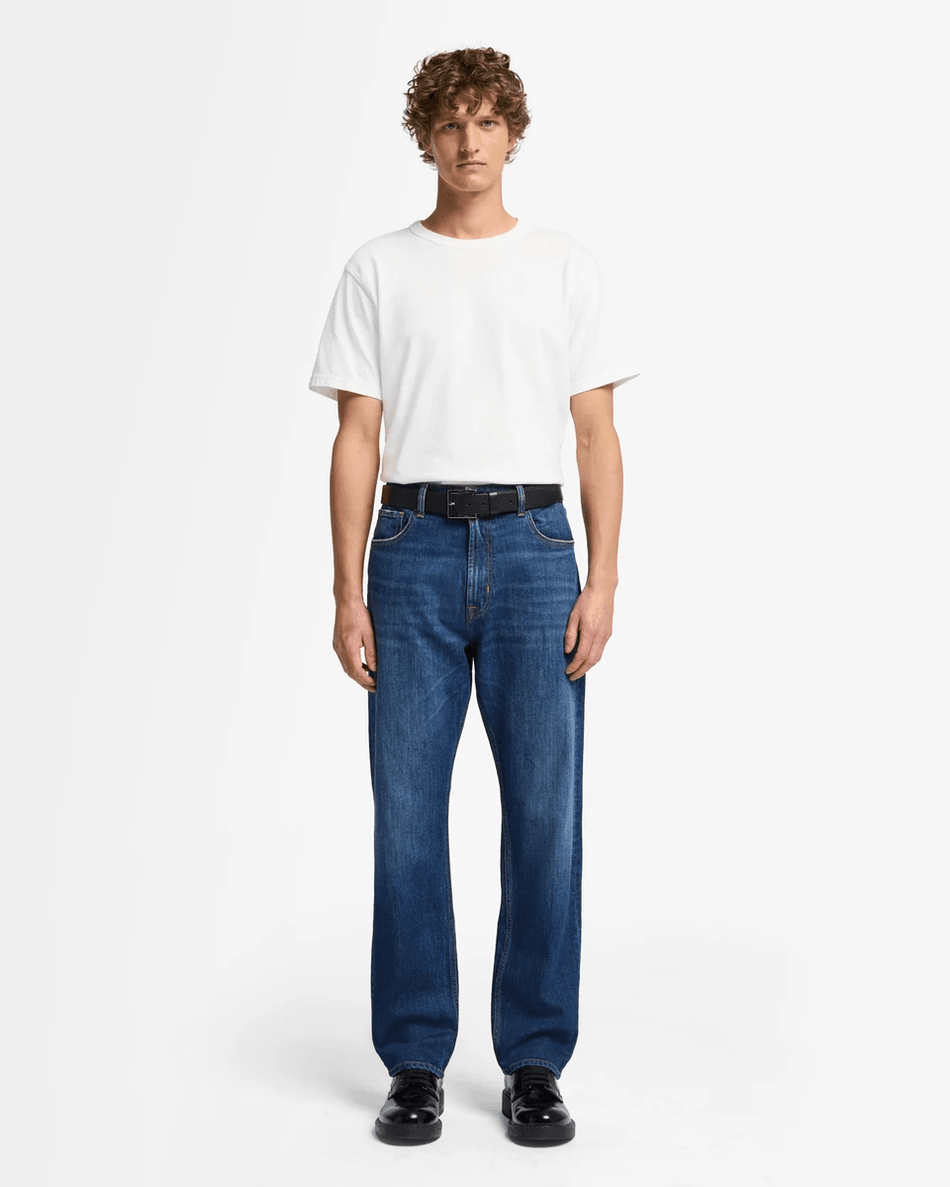Elevate your wardrobe with the 7 For All Mankind Multicount Modern Straight in Trad Blue. This exceptional pair of jeans combines a sophisticated dark wash with a classic straight-fit design, making it the perfect choice for any occasion, from casual outings to more polished looks.
