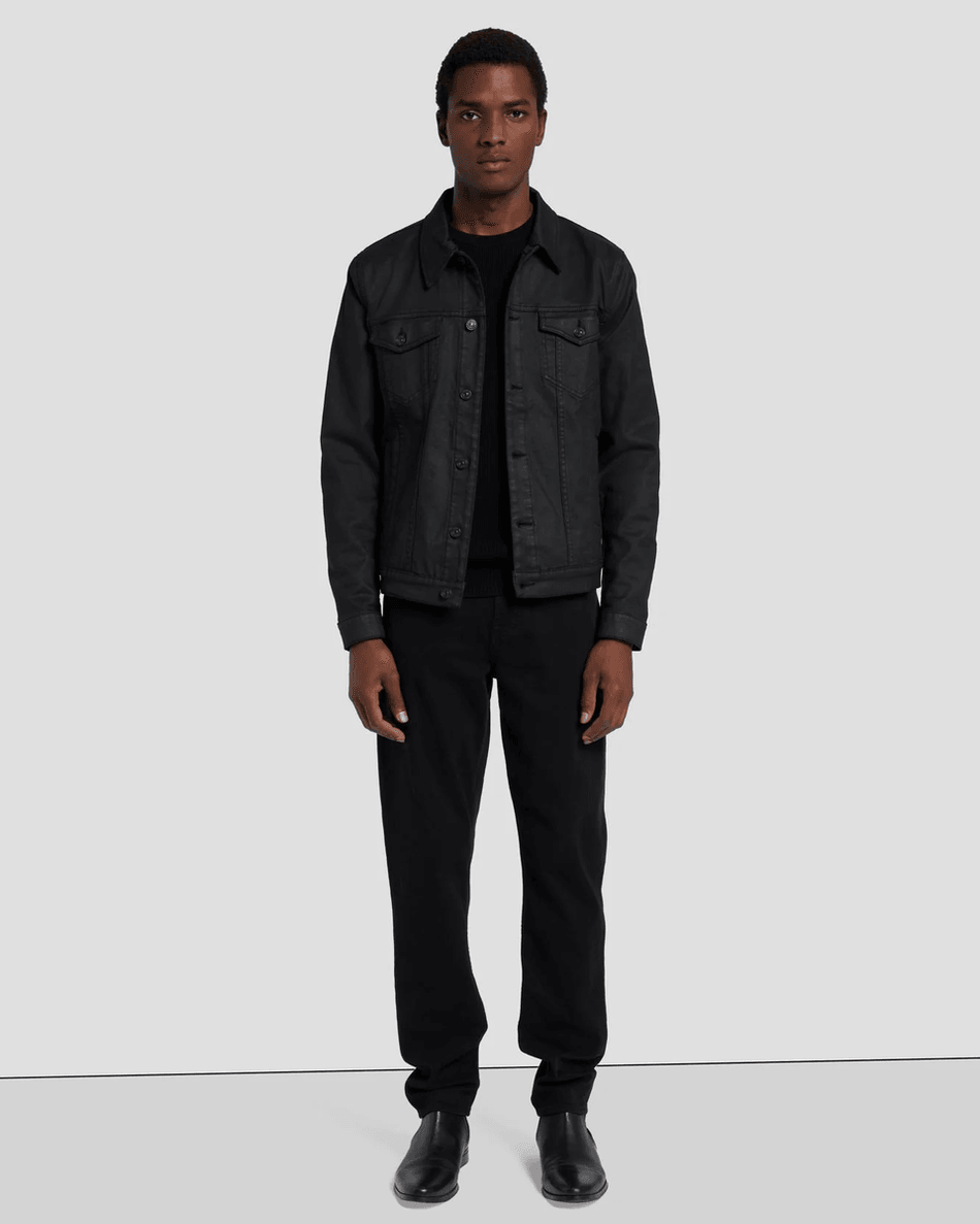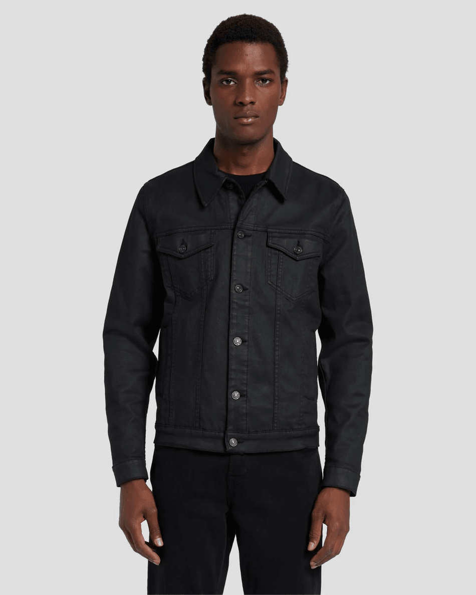 Don't miss out on this essential piece! Upgrade your wardrobe with the 7 For All Mankind Perfect Trucker Jacket in Coated Black today and experience the perfect blend of style and comfort. Shop now and redefine your fashion statement!