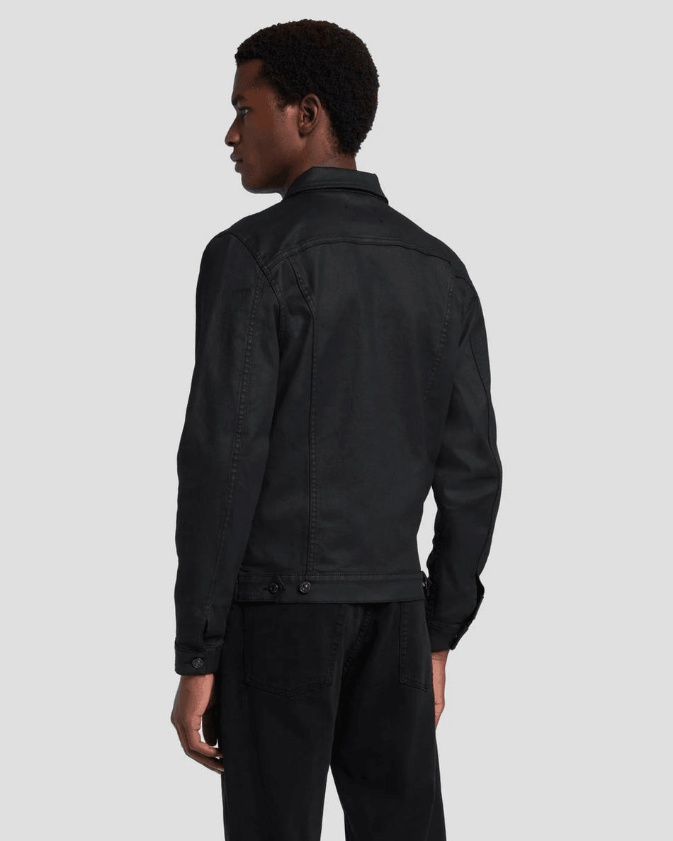 Discover the 7 For All Mankind Perfect Trucker Jacket in Coated Black