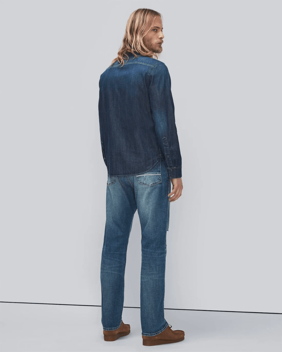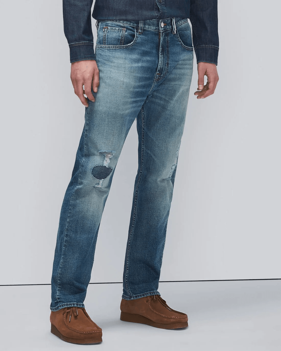 The 7 For All Mankind Selvedge Cooper J in Horizon Destroyed is crafted for those who appreciate quality and modern design. The slightly shorter inseam complements the relaxed, straight fit, providing versatility for day-to-night wear. Whether paired with a casual tee or a chic blouse, these jeans are designed to be your go-to favorite.