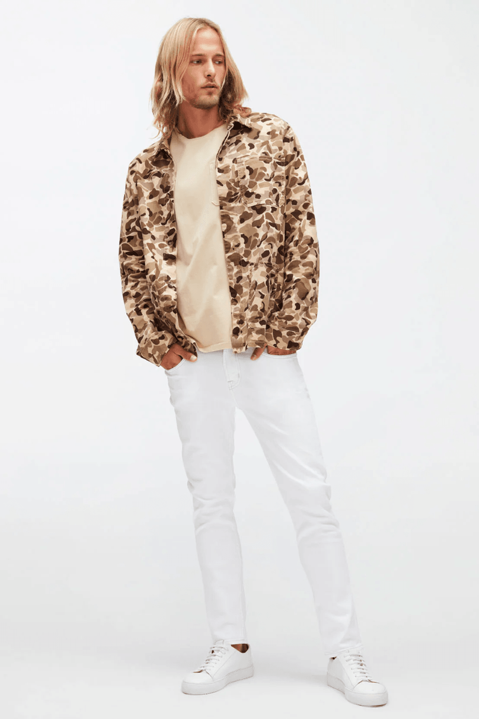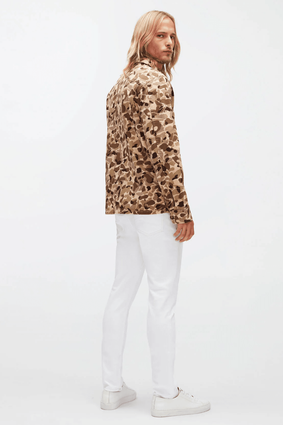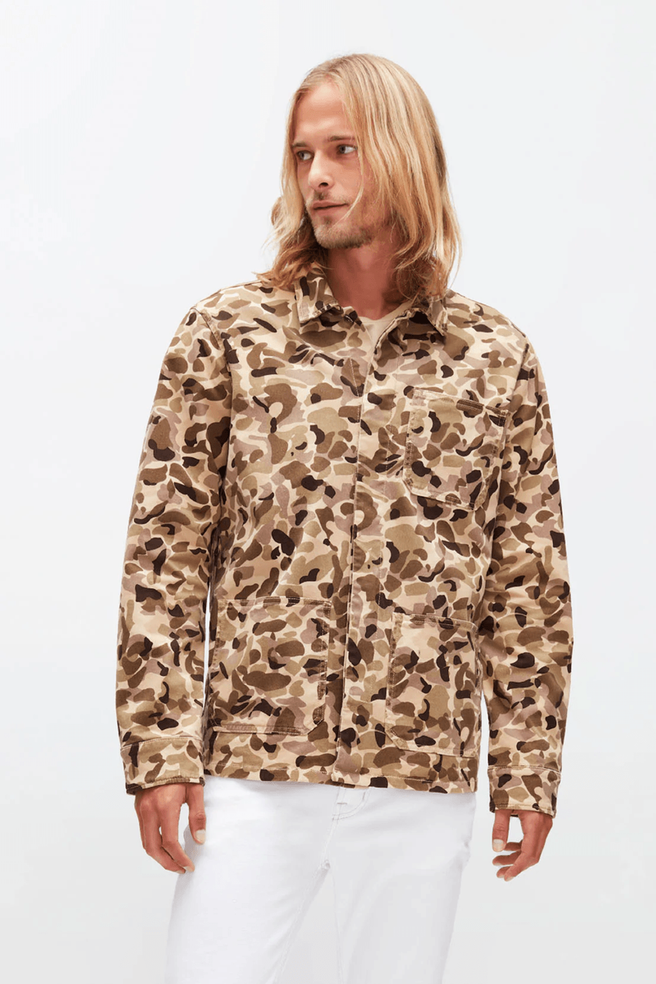 Transform your casual wardrobe with the 7 For All Mankind Shirt Jacket In Camo Camo. This striking shirt jacket effortlessly combines style and comfort, making it the perfect outer layer for any occasion. Designed with a unique desert-hued camo pattern, it's sure to make a statement wherever you go.