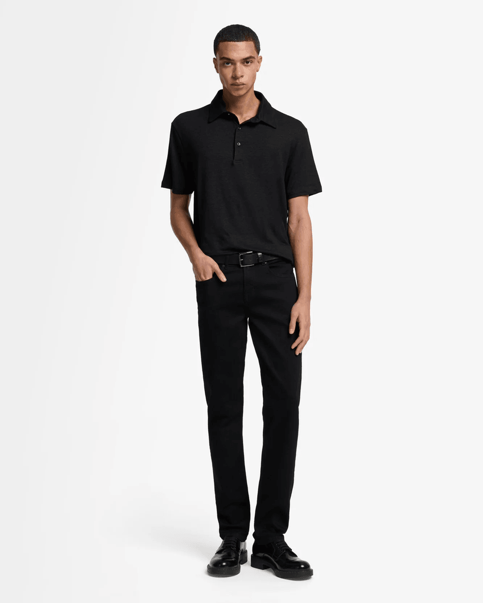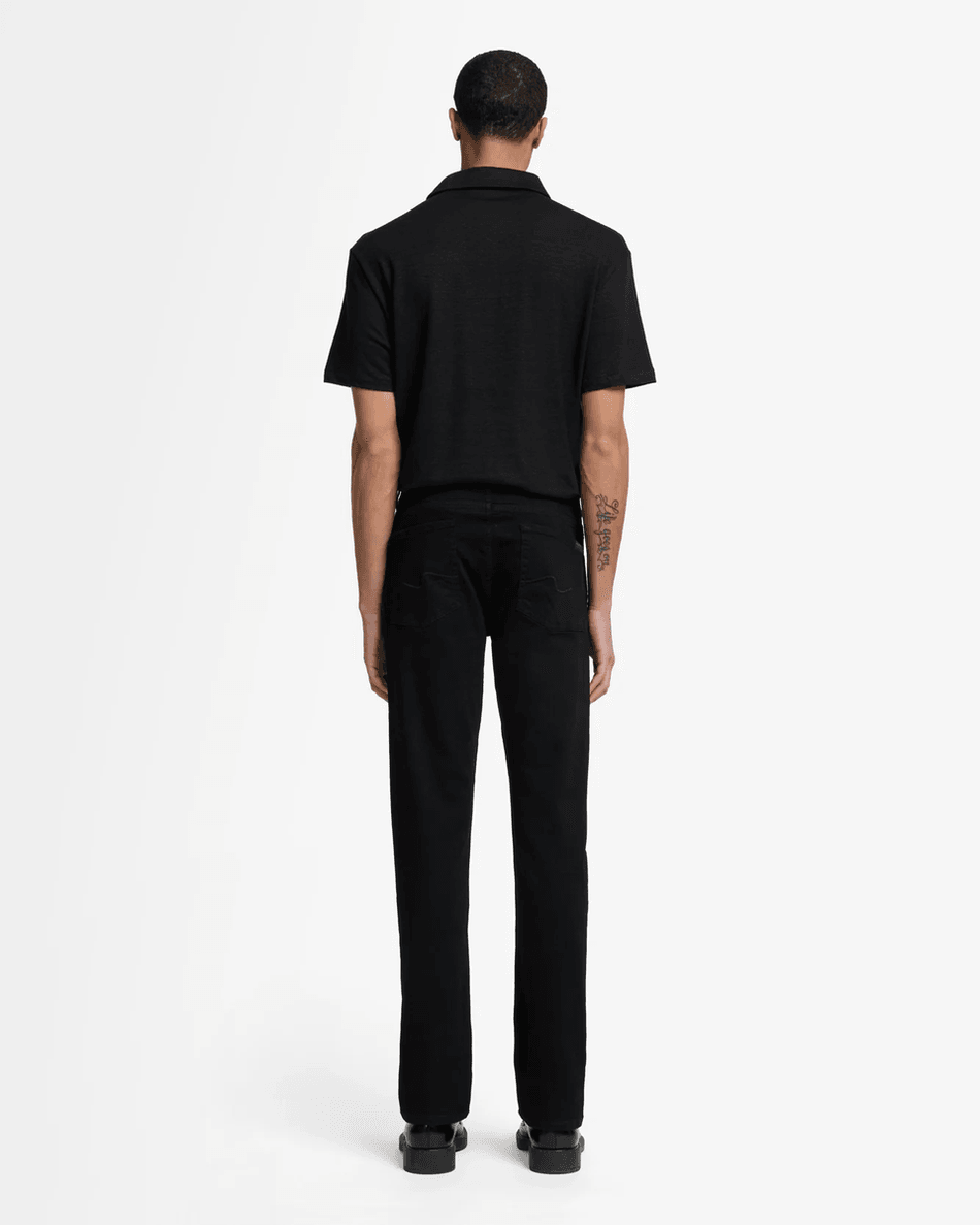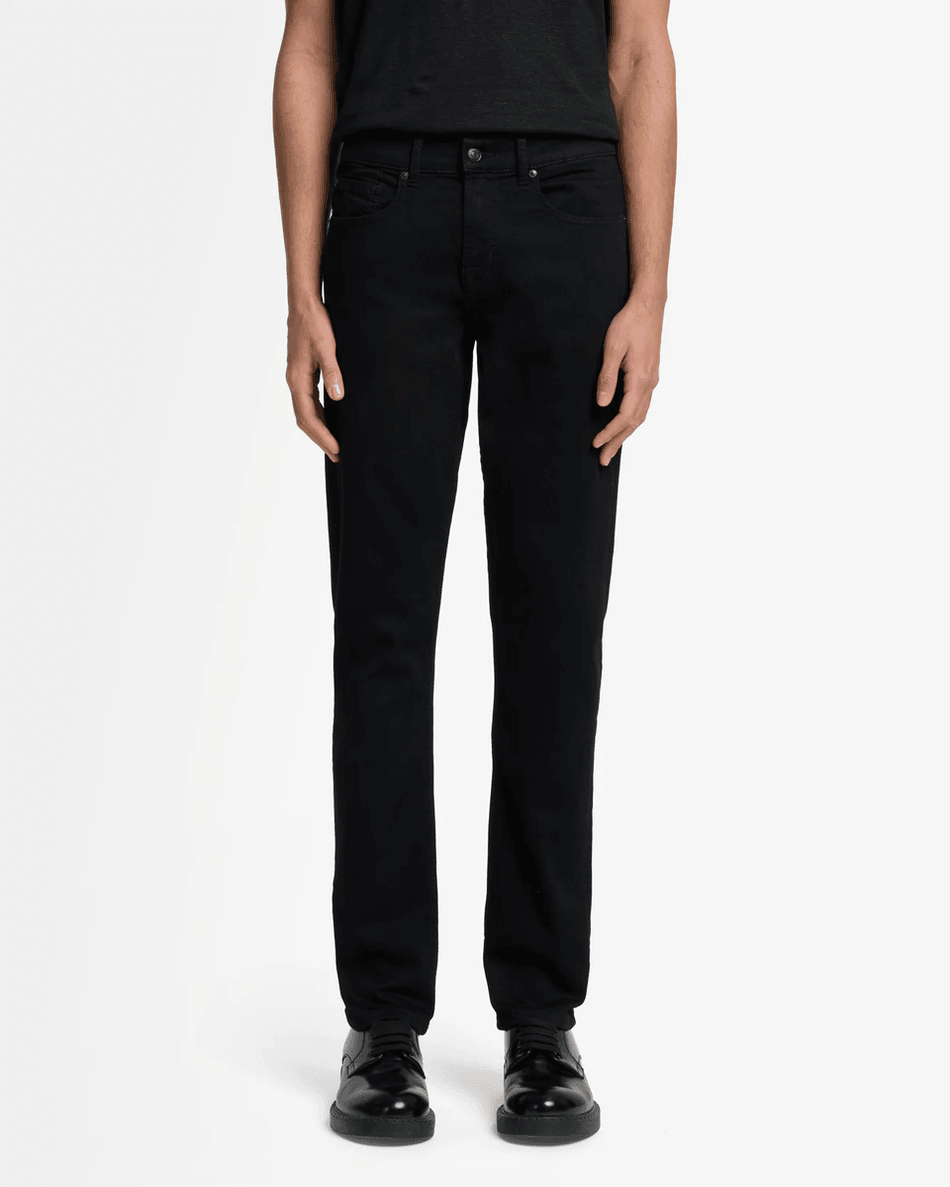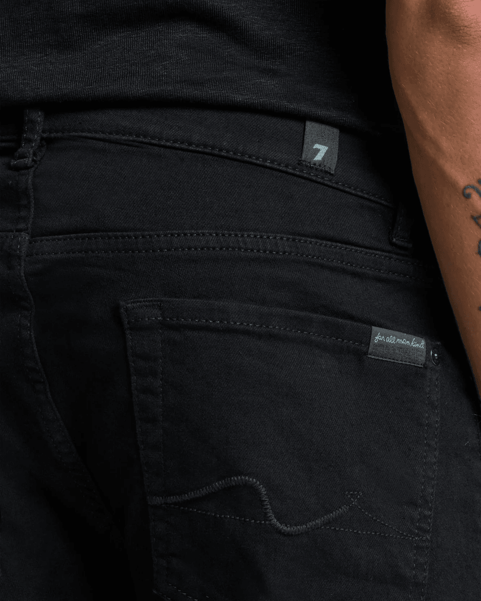 Elevate your denim collection with the 7 For All Mankind Slimmy in Black Onyx. This contemporary slim-fit jean combines style and comfort, making it a must-have for every wardrobe. Perfect for both casual outings and dressed-up occasions, these jeans offer versatility that fits your lifestyle.