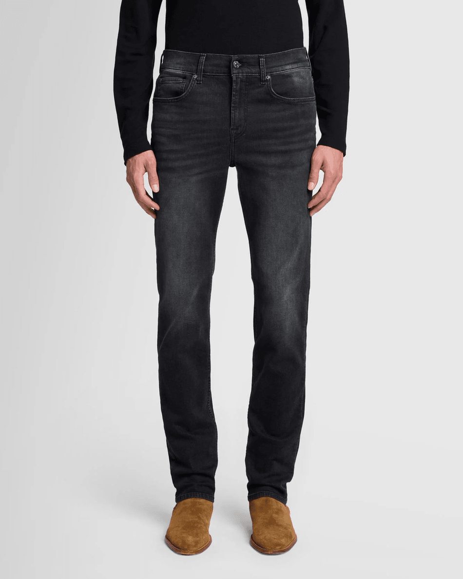 Elevate your denim game with the 7 For All Mankind Slimmy in Knik Wind. This classic slim-fit jean is designed for those who appreciate a tailored look without compromising comfort. Experience a streamlined silhouette that flatters your shape while allowing freedom of movement.