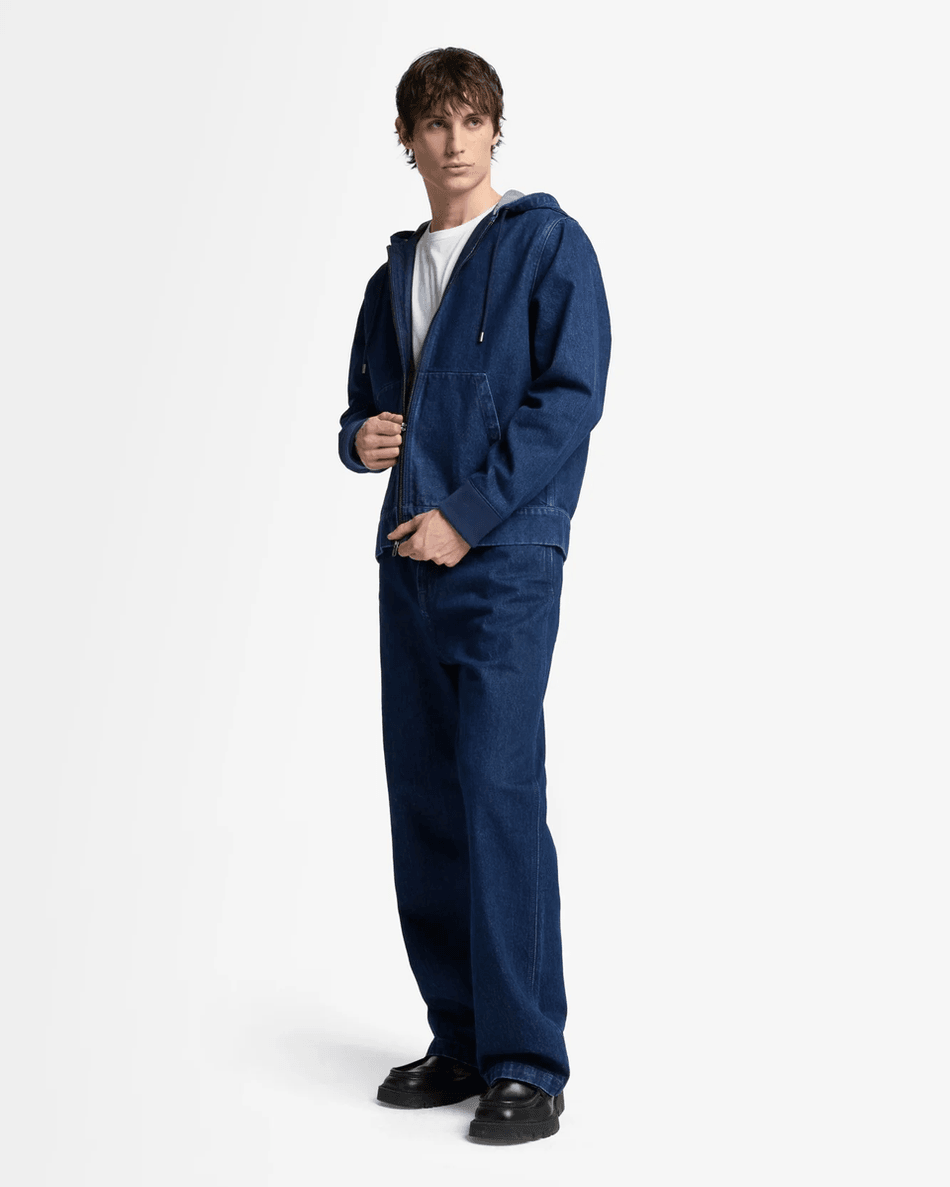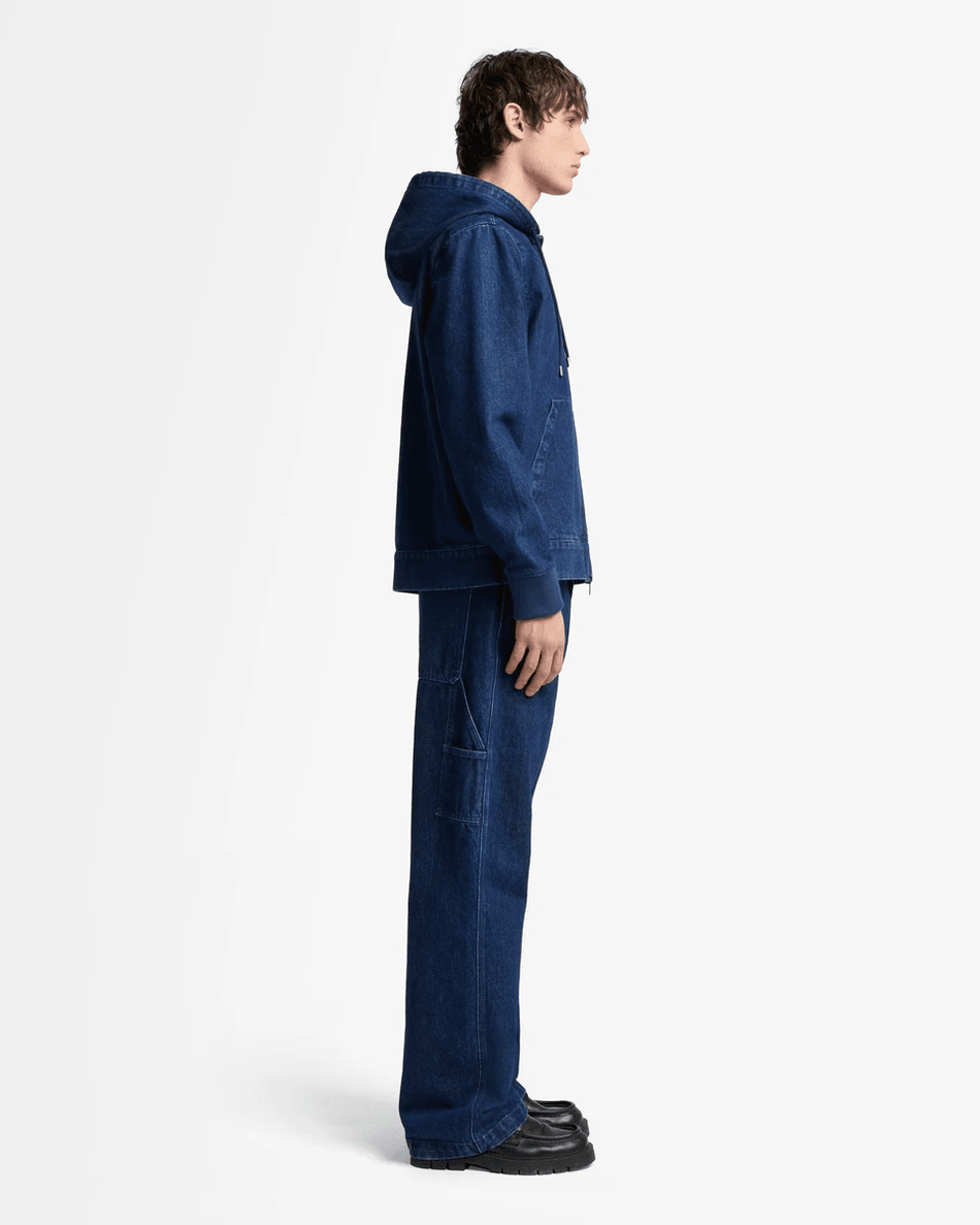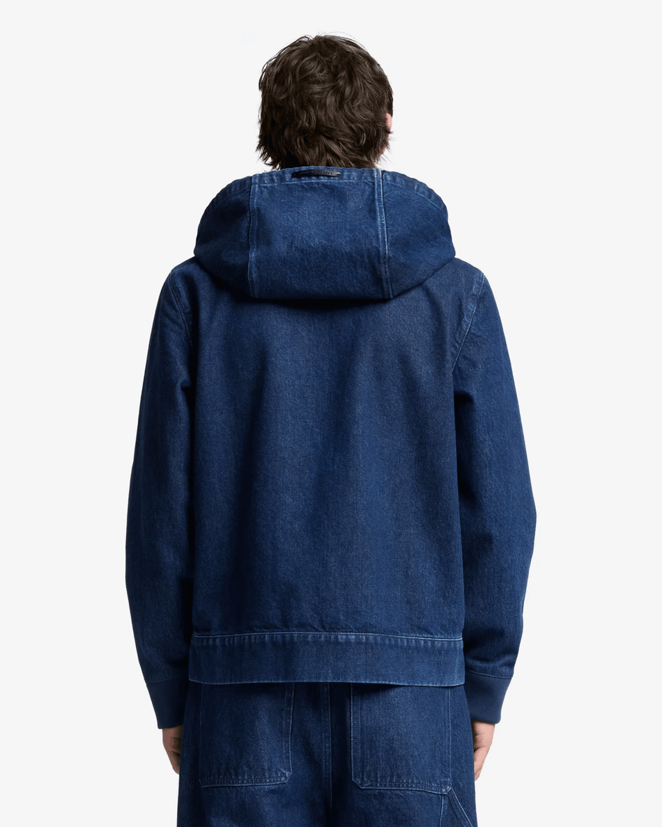 Discover the 7 For All Mankind Utility Denim Hoodie in Carpenter Blue