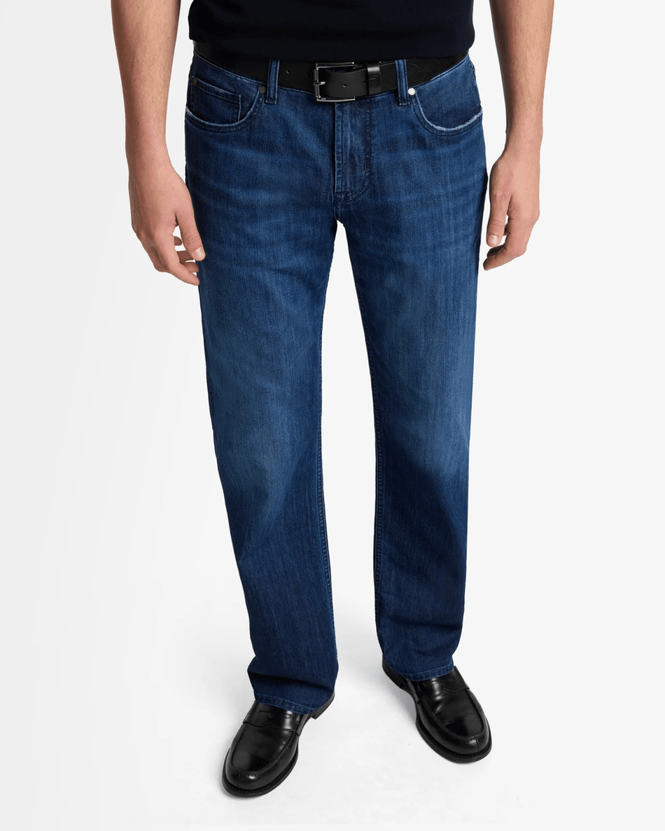 With a classic zip closure and clean back pocket design, these jeans are as practical as they are fashionable. The dark indigo wash complements any top, making them a versatile addition to your collection. Plus, the subtle sanding gives them a unique, lived-in feel that you'll love.