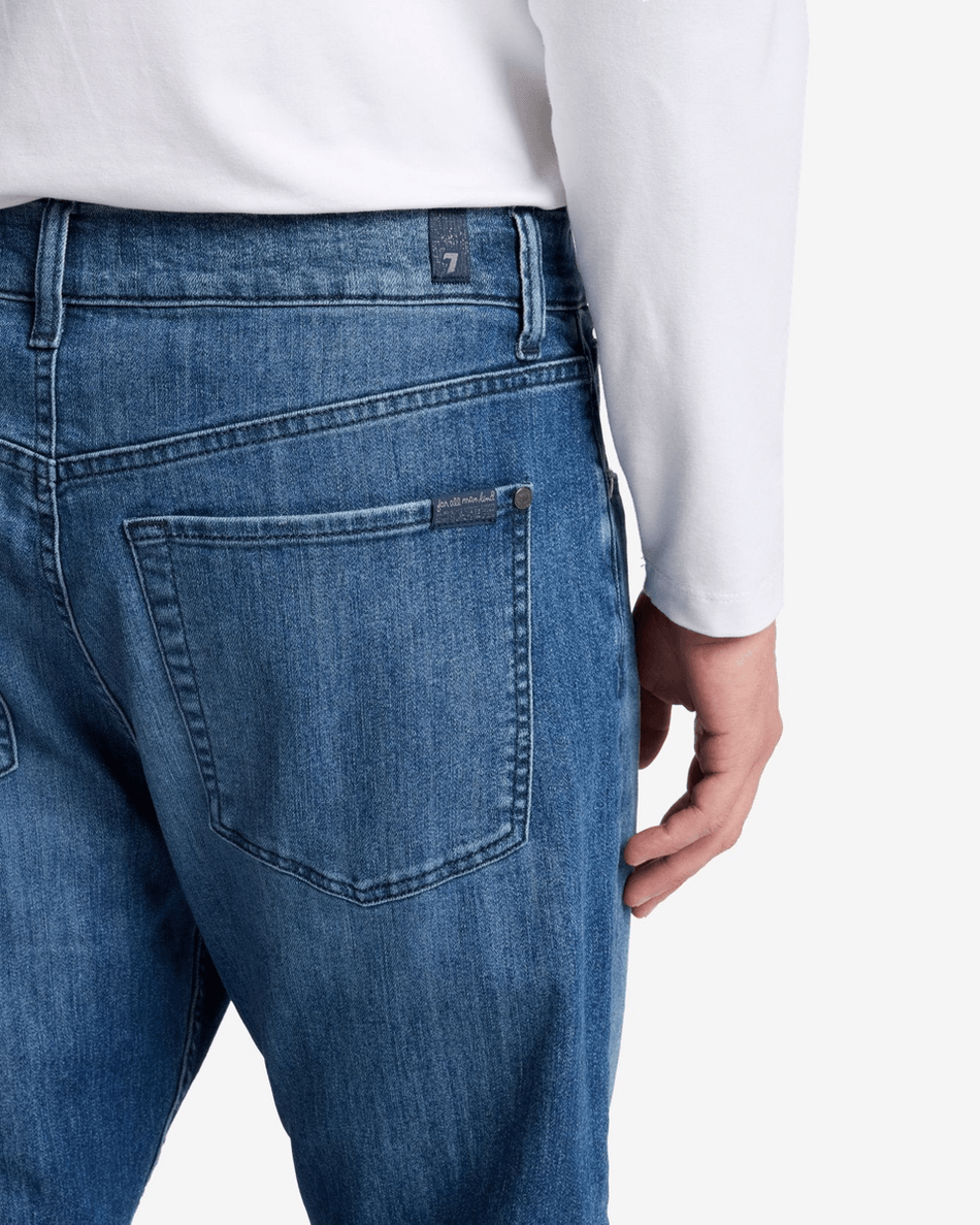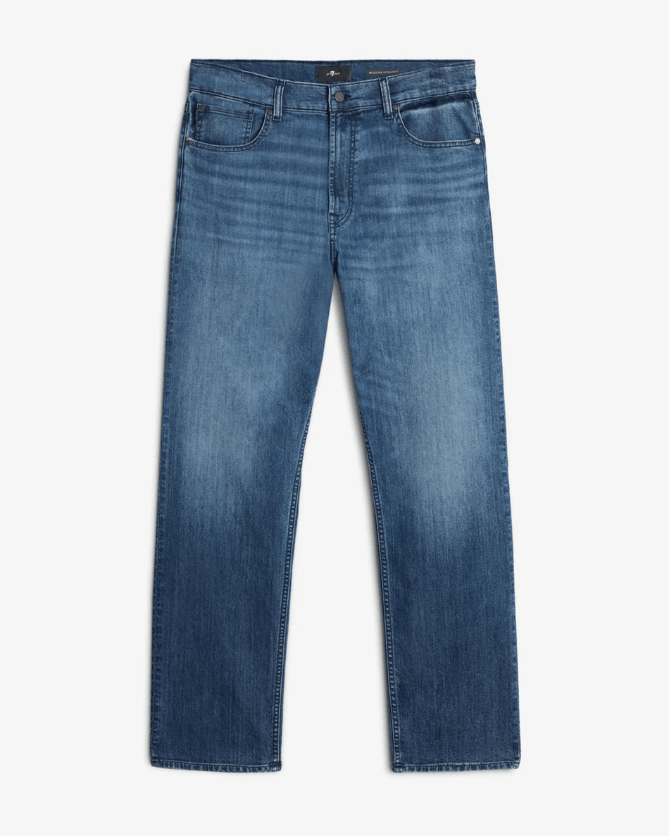The 7 For All Mankind Airweft Modern Straight In Landing is more than just a pair of jeans; it's a statement piece for any wardrobe. The innovative fabric technology ensures you stay comfortable all day long, whether you're heading to work or enjoying a night out. The medium wash and stylish fading give these jeans a modern edge, making them easy to pair with any outfit.