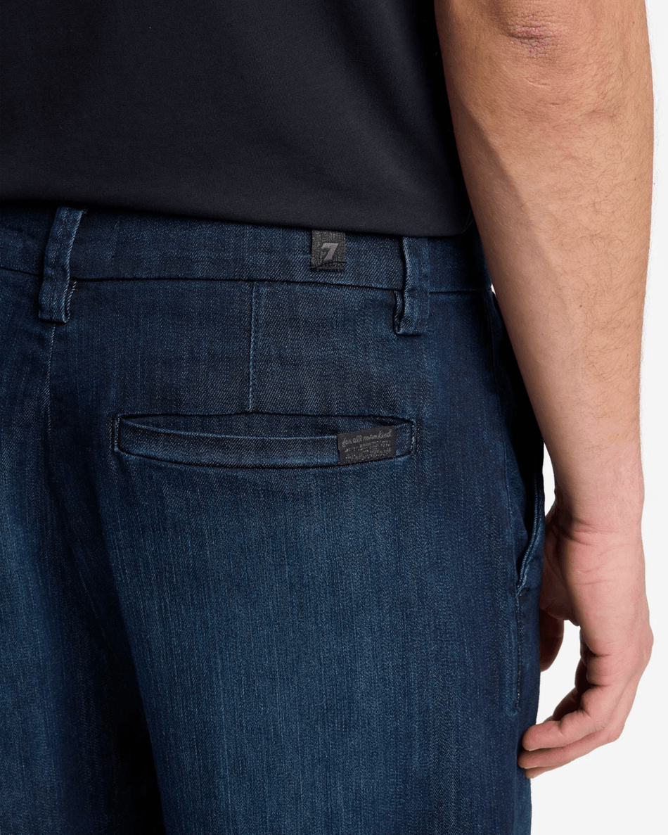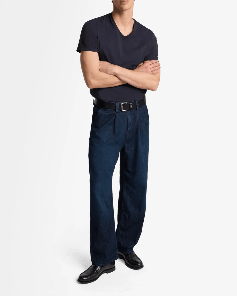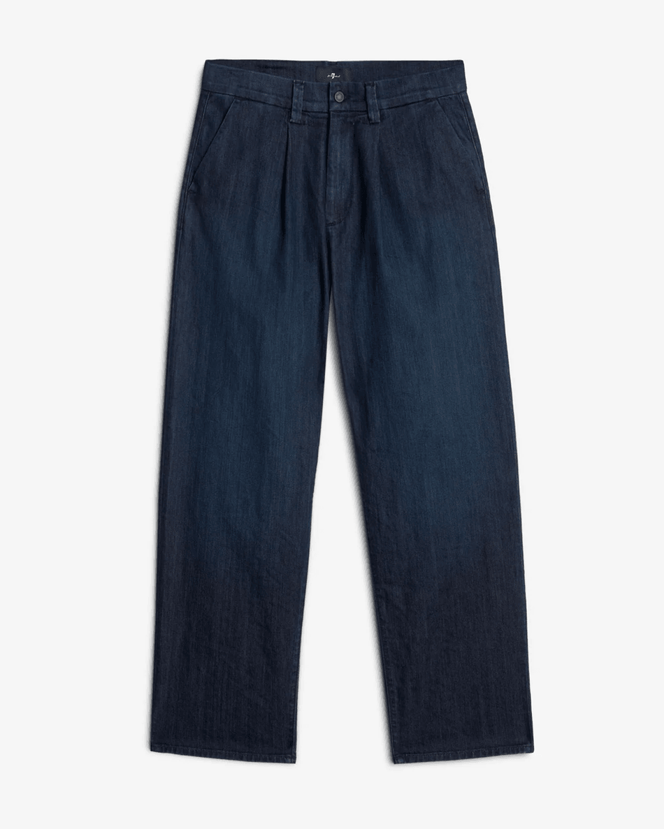 The 7 For All Mankind Airweft Pleated Trouser In Speed Speed is crafted from premium Japanese denim, ensuring an incredibly soft feel that allows for effortless movement throughout your day. The pleated front adds a touch of elegance, making these trousers ideal for both casual outings and more refined occasions.