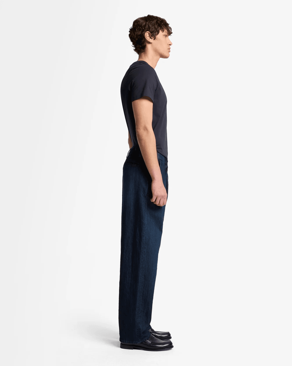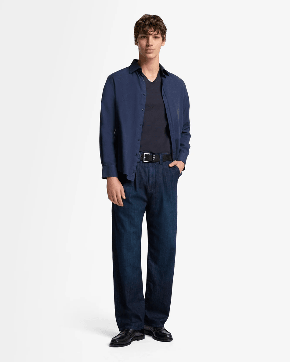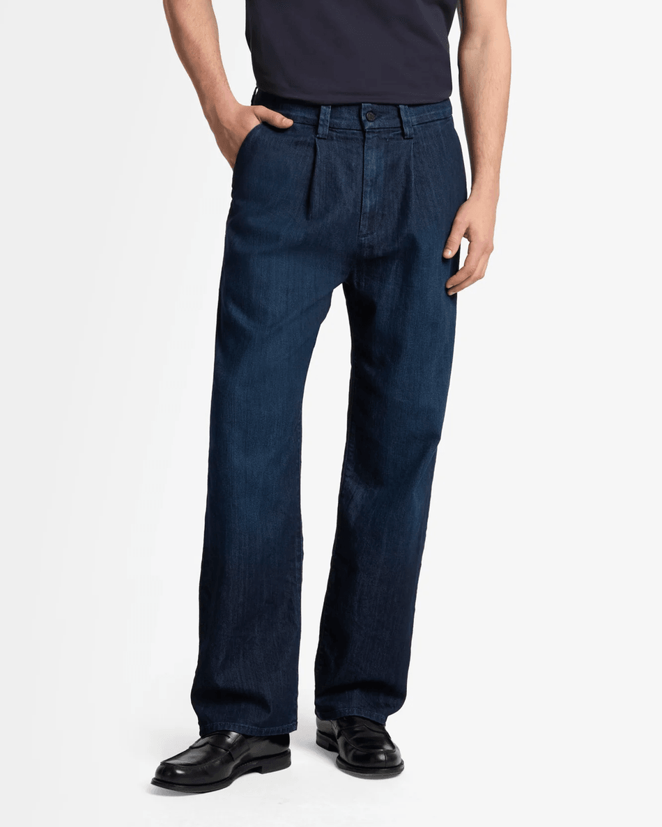 The 7 For All Mankind Airweft Pleated Trouser In Speed Speed is crafted from premium Japanese denim, ensuring an incredibly soft feel that allows for effortless movement throughout your day. The pleated front adds a touch of elegance, making these trousers ideal for both casual outings and more refined occasions.