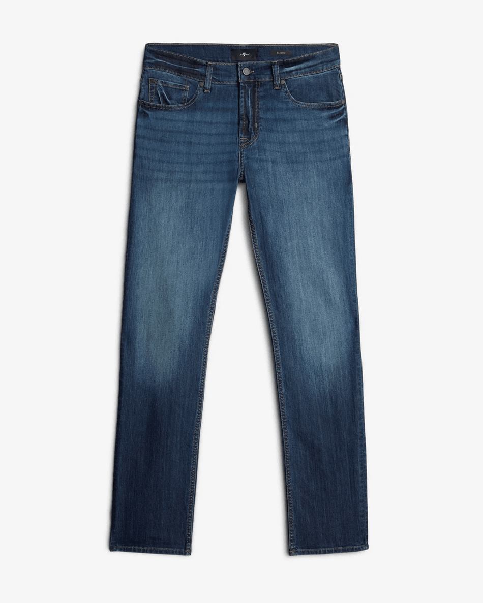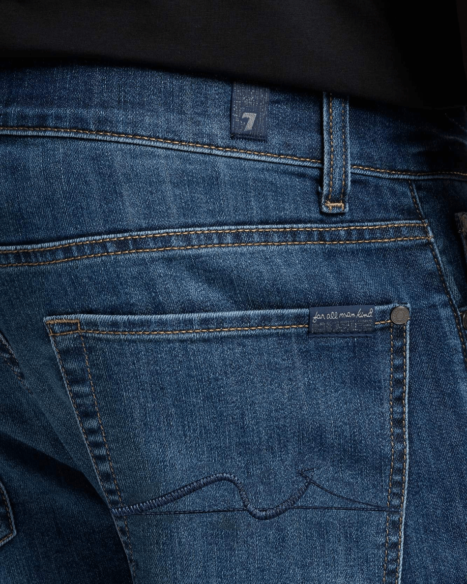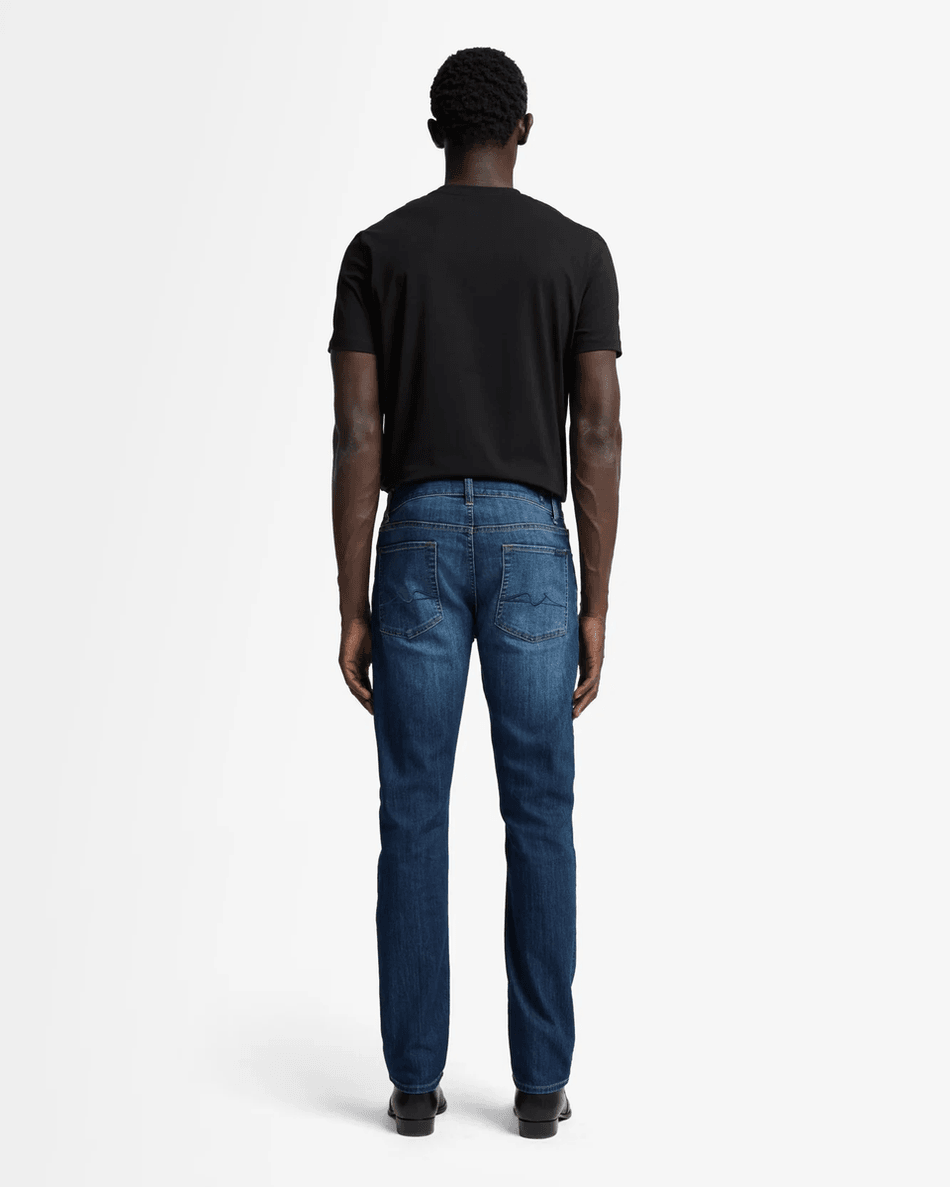 Elevate your denim collection with the 7 For All Mankind Airweft Slimmy in Teak Teak. This classic slim fit jean offers a modern silhouette that is both stylish and comfortable, perfect for any occasion.