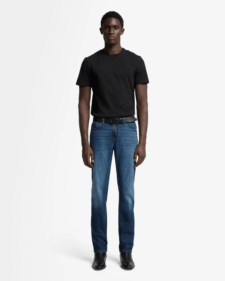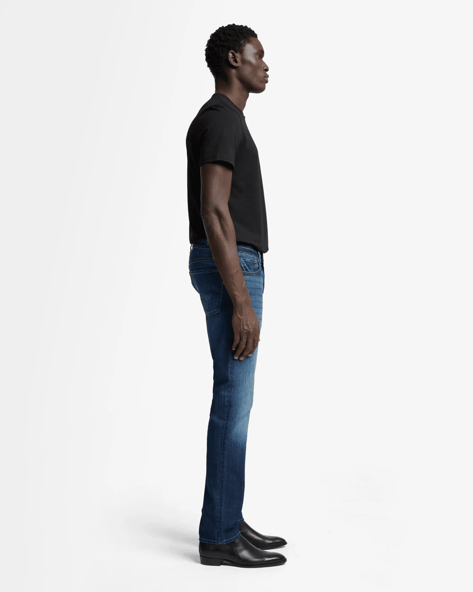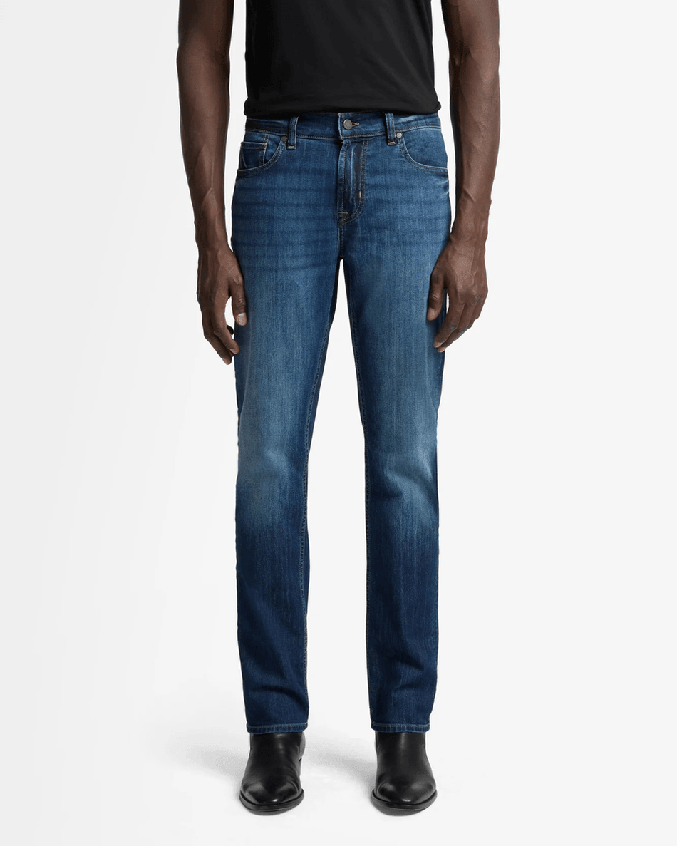 Elevate your denim collection with the 7 For All Mankind Airweft Slimmy in Teak Teak. This classic slim fit jean offers a modern silhouette that is both stylish and comfortable, perfect for any occasion.