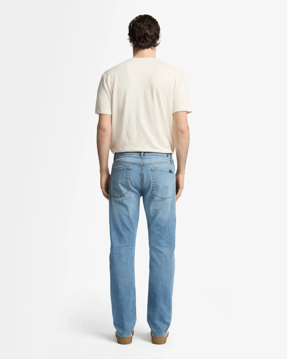 The 7 For All Mankind Airweft The Straight in Formentera is crafted from 8.25oz premium Japanese denim, delivering a light wash that ensures versatility in your wardrobe. The relaxed fit runs straight from hip to hem, making these jeans perfect for any occasion. Whether paired with a casual tee or dressed up with a blazer, these jeans are sure to impress.
