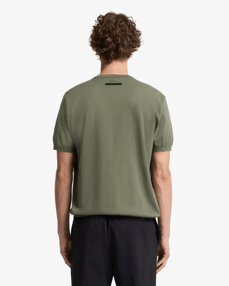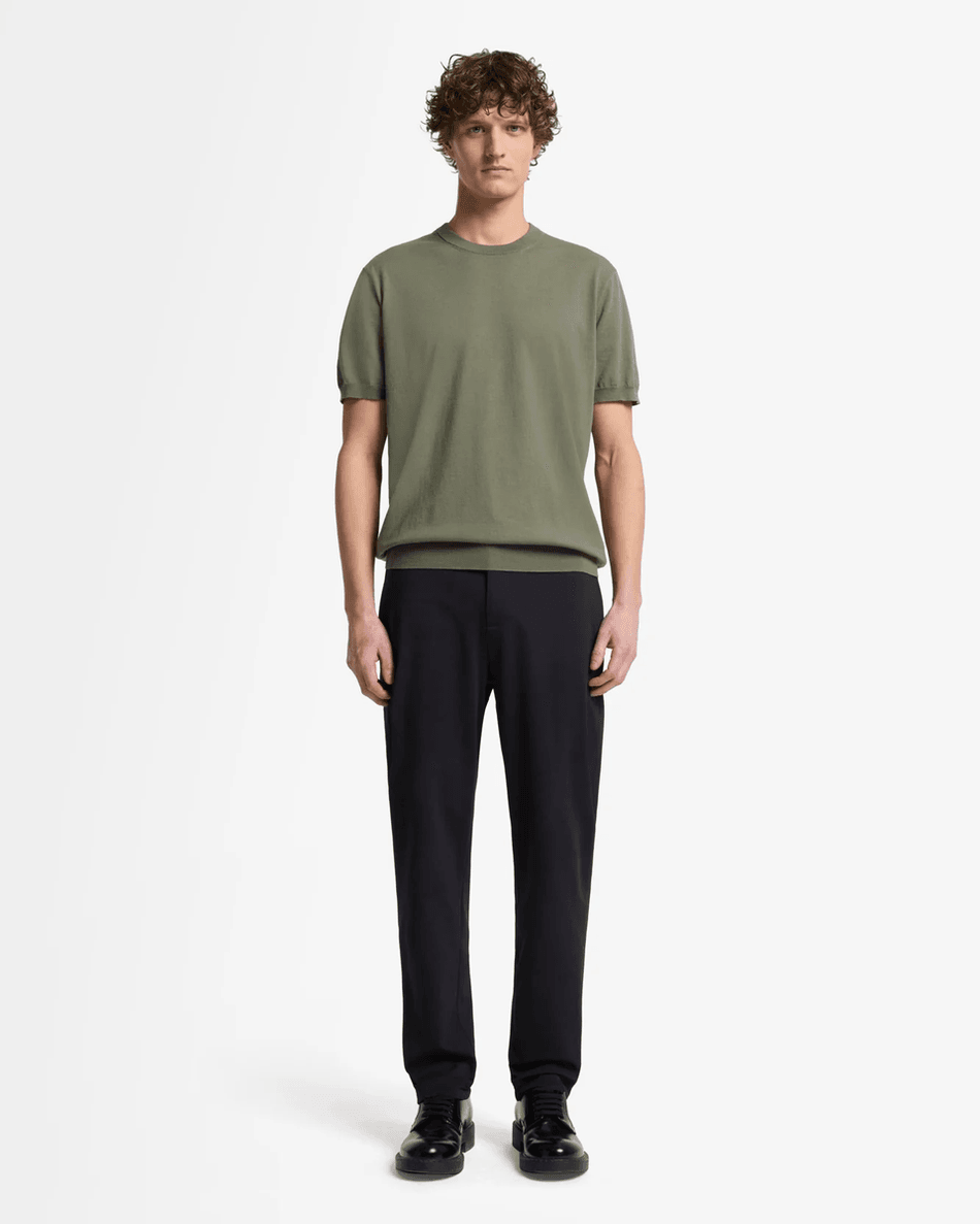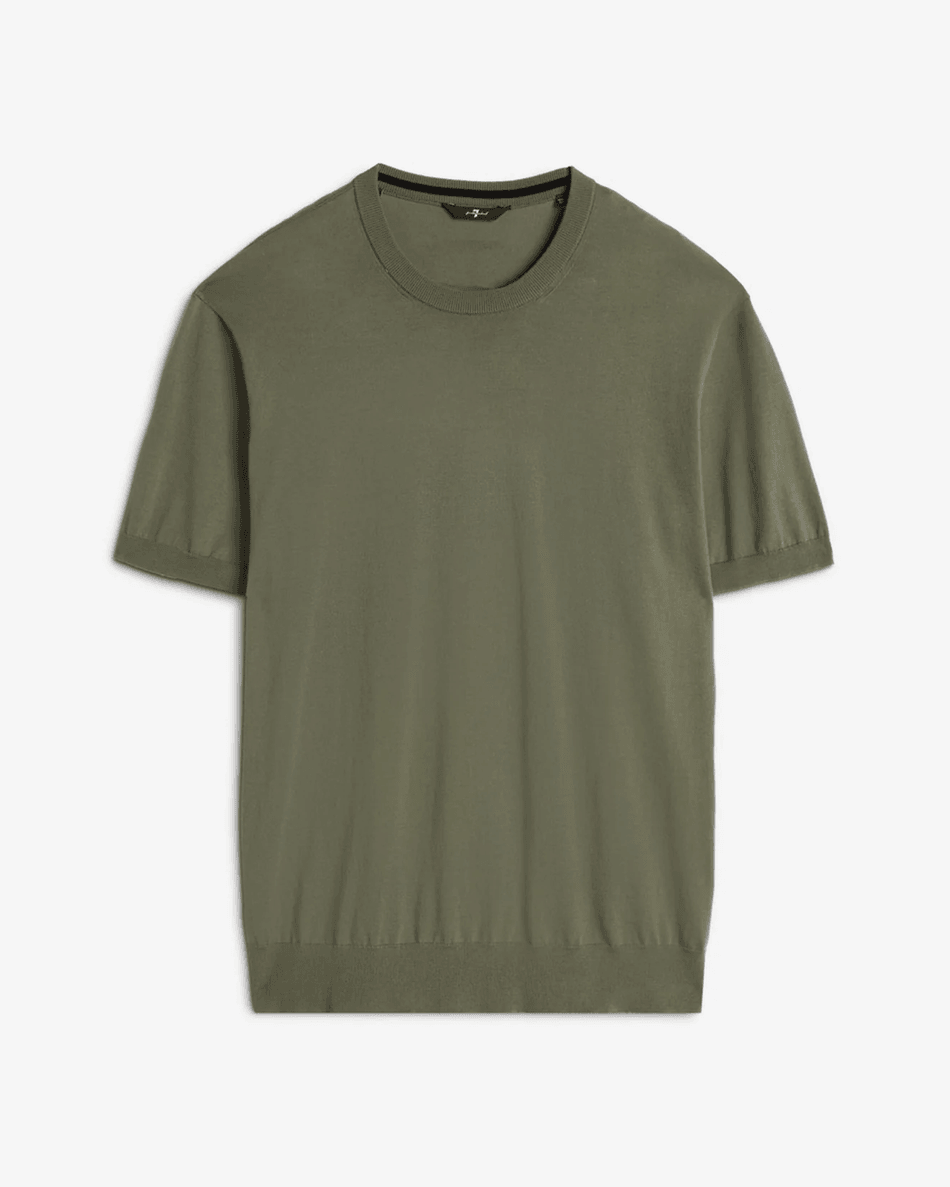 Discover the 7 For All Mankind Classic Cotton Short Sleeve Sweater in Army Green