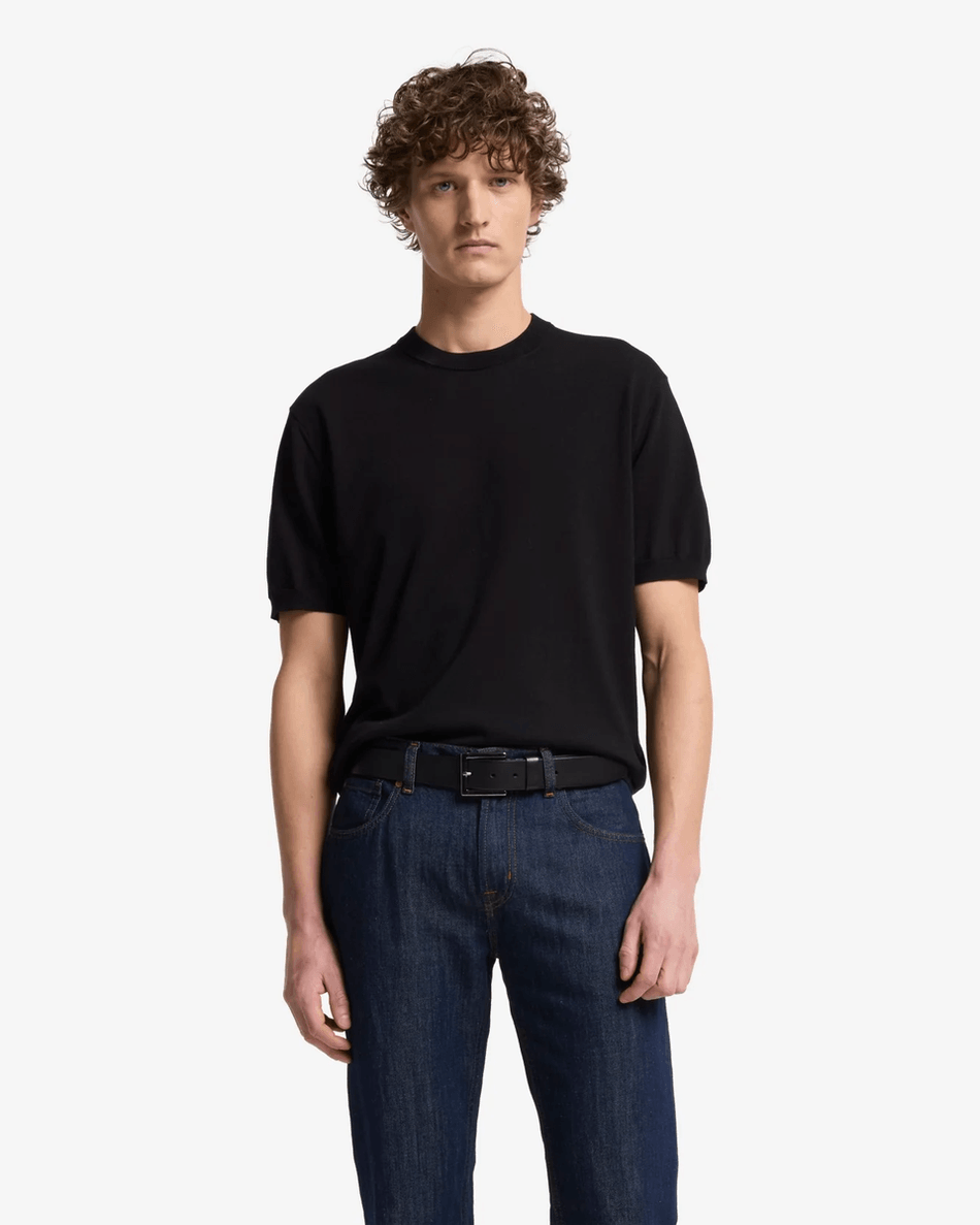Elevate your wardrobe with the 7 For All Mankind Classic Cotton Short Sleeve Sweater in Black Black. This essential piece combines comfort and style, making it perfect for any casual occasion.