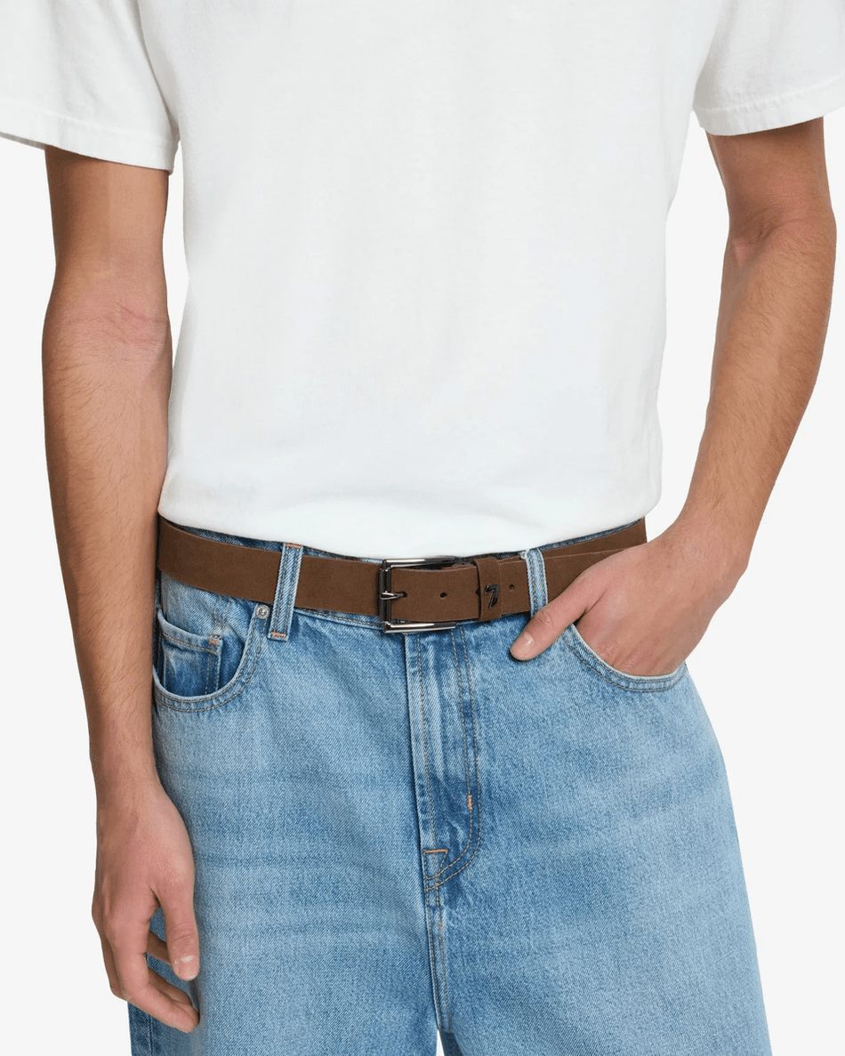 Discover the 7 For All Mankind Classic Italian Suede Belt in Chocolate