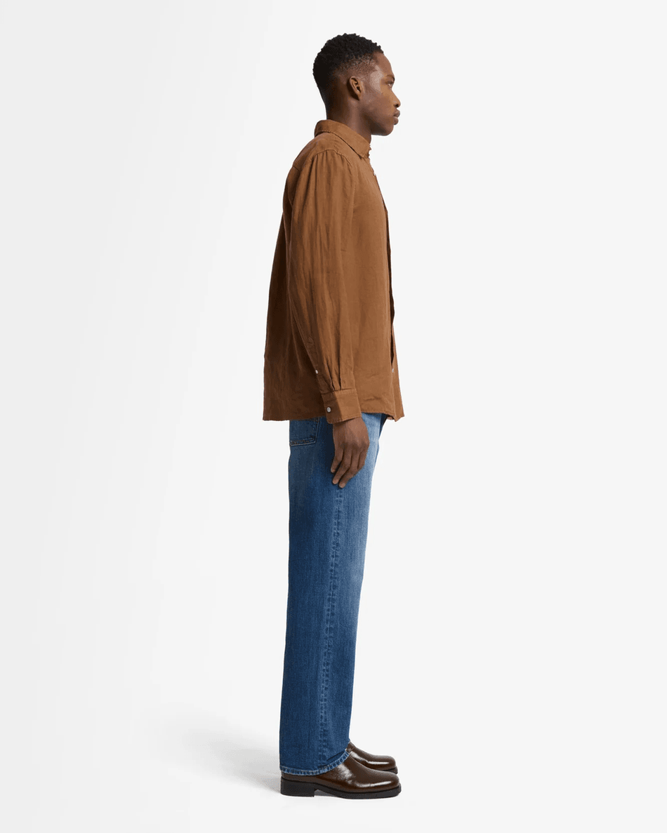 Discover the 7 For All Mankind Classic Linen Button Up Shirt in Caramel