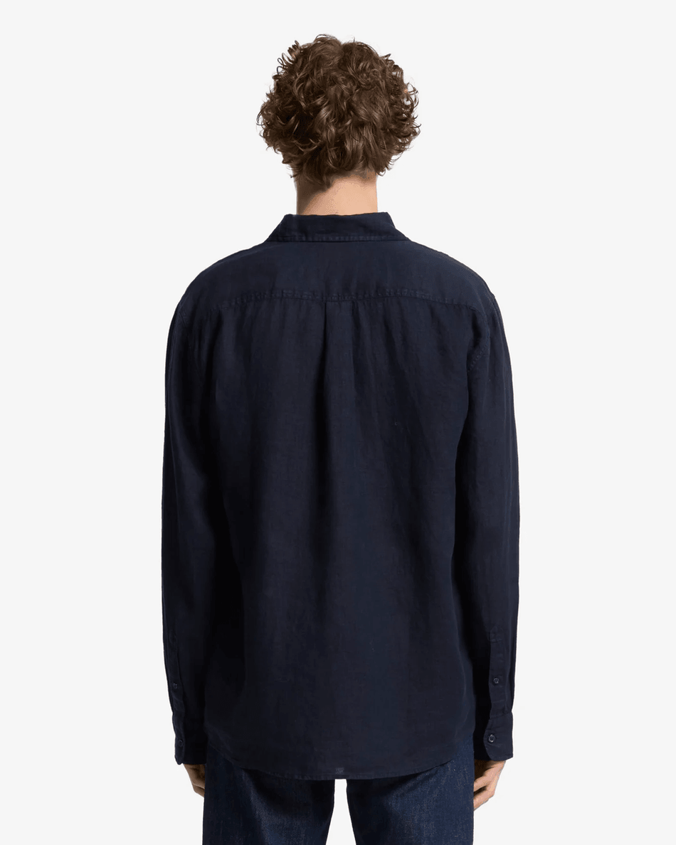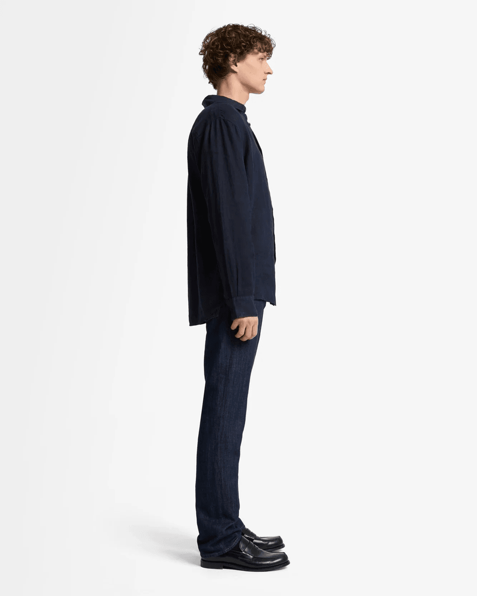 Discover the 7 For All Mankind Classic Linen Button Up Shirt in Navy Navy