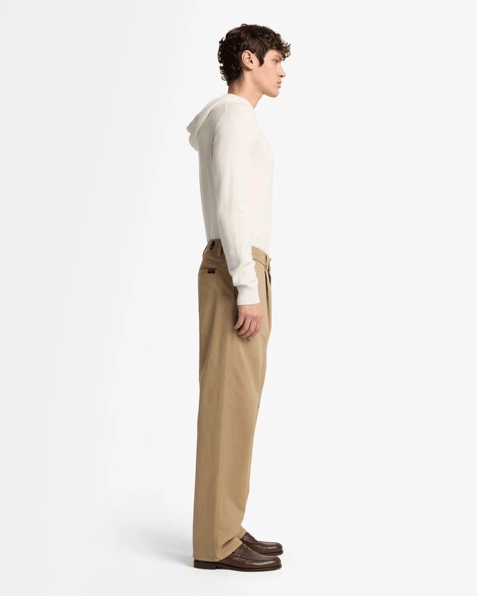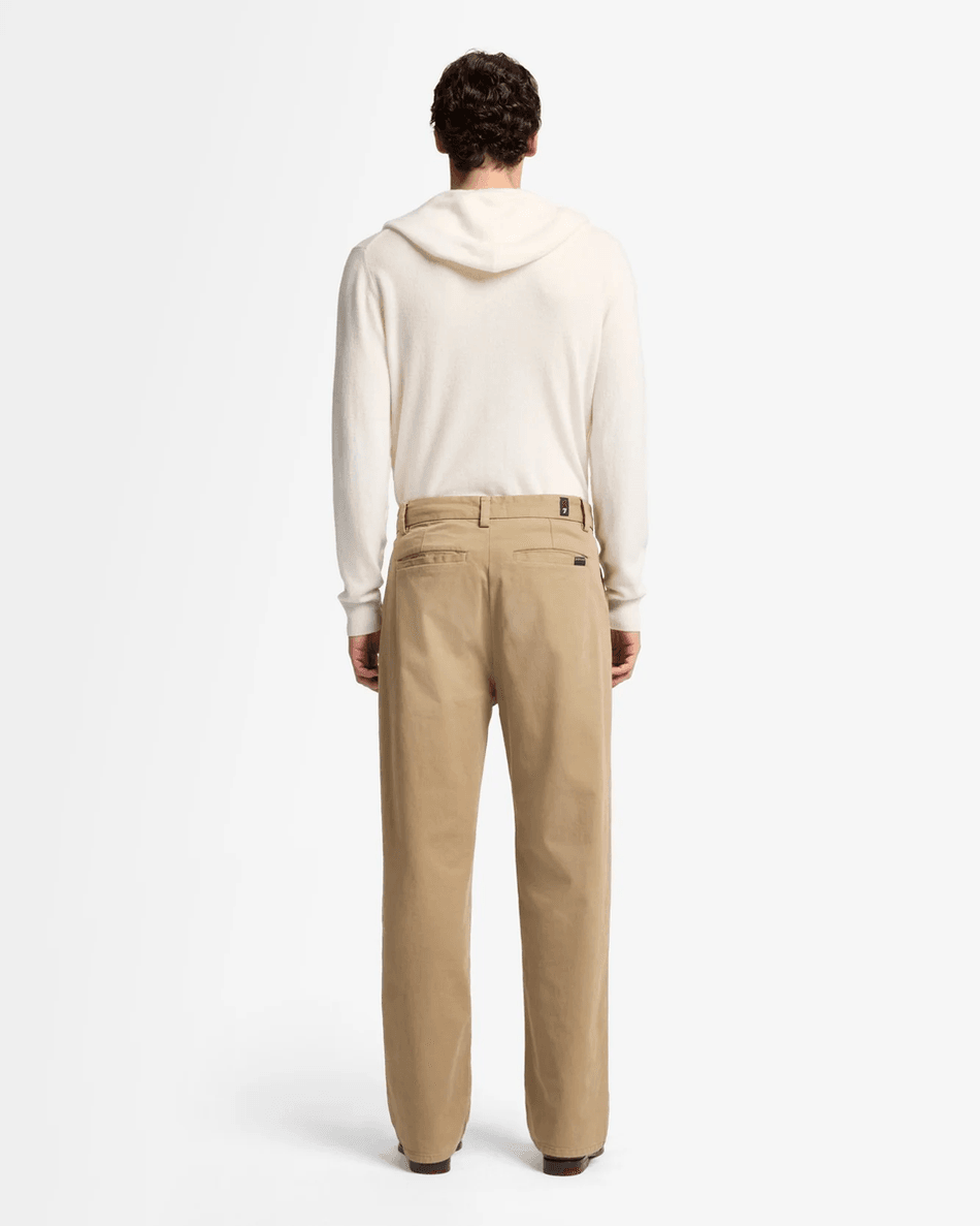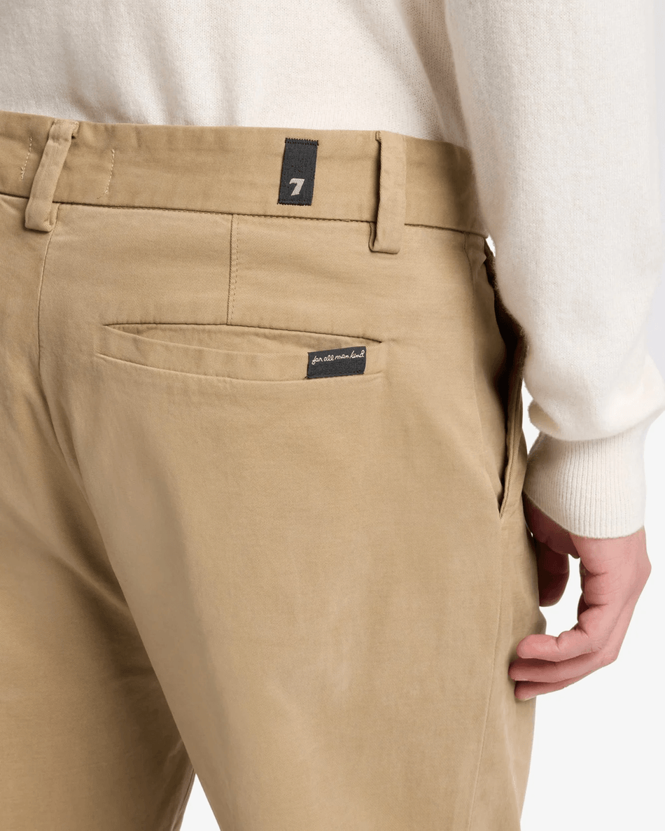 The 7 For All Mankind Comfort Twill Pleated Trouser in Silver Mink is more than just a pair of trousers; it's a statement of style and comfort. With its zip fly and tonal button closure, it ensures a secure fit while the welted back pocket adds a touch of sophistication. The warm khaki color is versatile, making it easy to pair with a variety of tops and shoes.