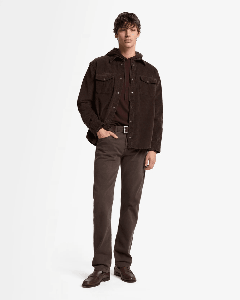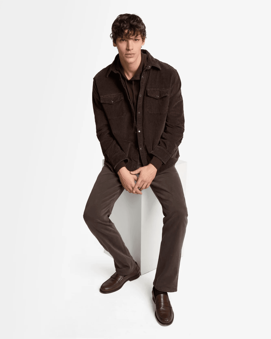 Elevate your style with the 7 For All Mankind Corduroy Overshirt in Coffee Bean. This versatile piece fits like a jacket and layers effortlessly over your favorite knits or tees. Crafted for comfort and style, it’s designed to keep you looking sharp while feeling relaxed.