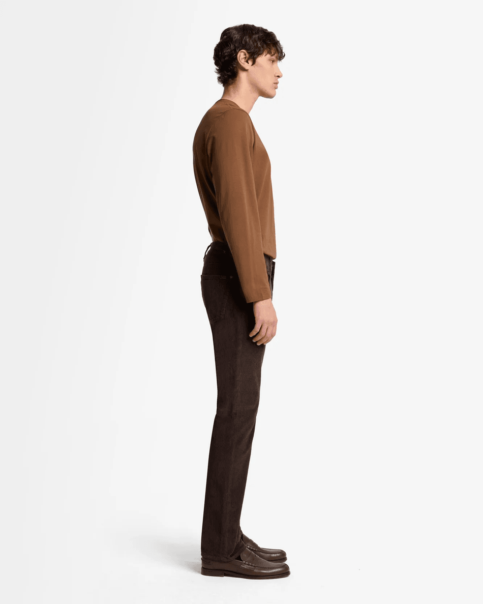 The 7 For All Mankind Corduroy The Straight in Coffee Bean combines comfort and elegance. The soft ribbed corduroy texture not only feels great against your skin but also adds an element of sophistication to any outfit. Whether you pair it with a casual tee or dress it up with a blazer, these pants are a wardrobe staple that transitions seamlessly from day to night.