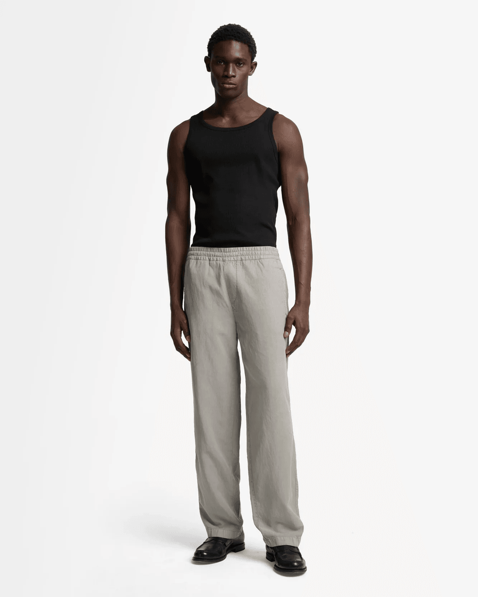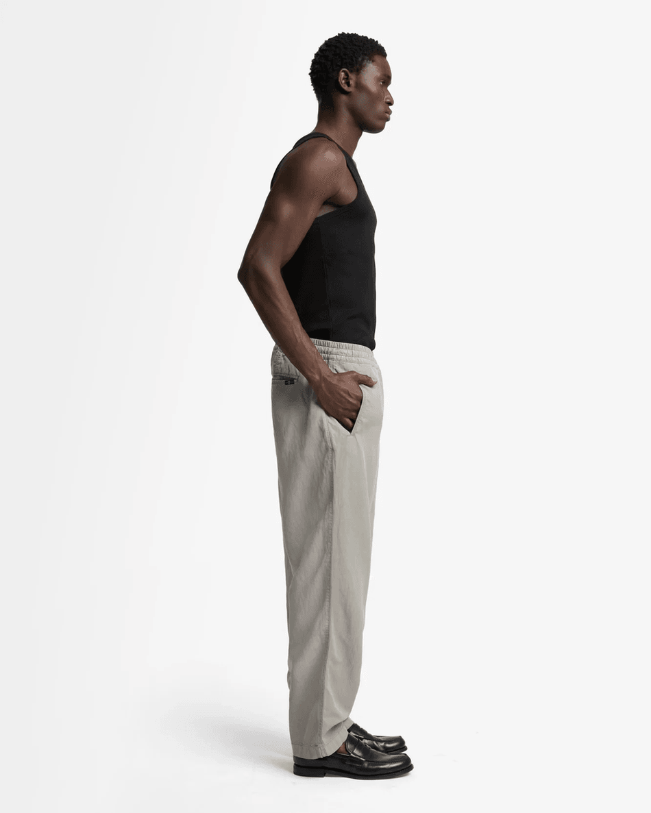Crafted from a lightweight linen blend, these joggers provide breathability and a soft feel against your skin. The side pockets offer practicality, while the welted back pocket adds a chic detail. Experience the perfect blend of fashion and function with these joggers.