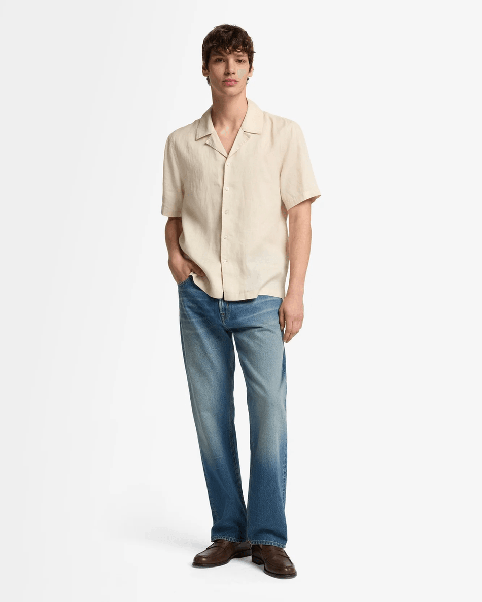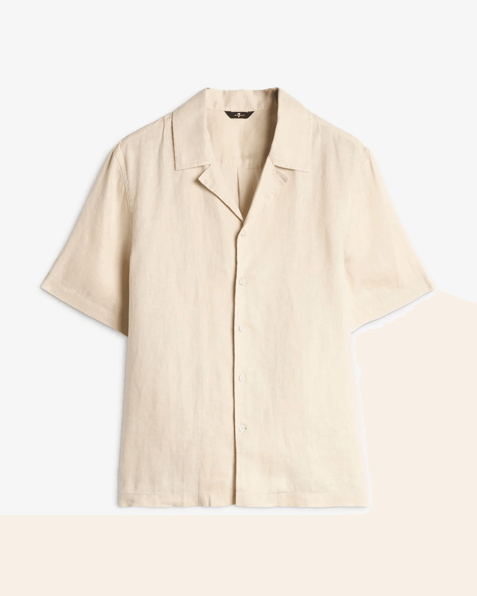 Discover the 7 For All Mankind Linen Camp Shirt in Bone Bone