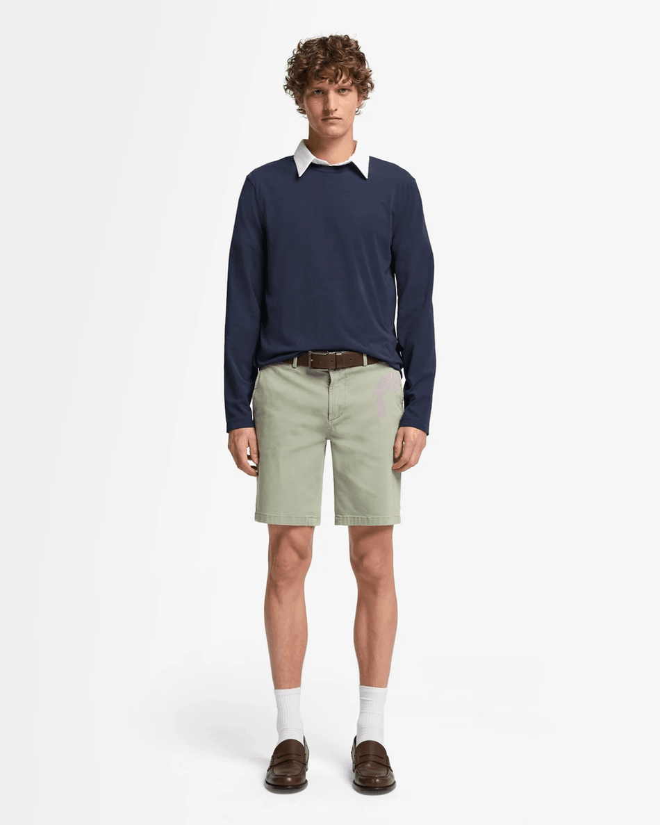 The 7 For All Mankind Luxe Performance Andrew Short in Russel features a relaxed yet structured fit that allows for effortless movement. The luxurious, silky-soft fabric provides high stretch, making these shorts ideal for active days or lounging in style. With a contemporary muted green hue, they pair well with a variety of tops, making them a versatile addition to your wardrobe.