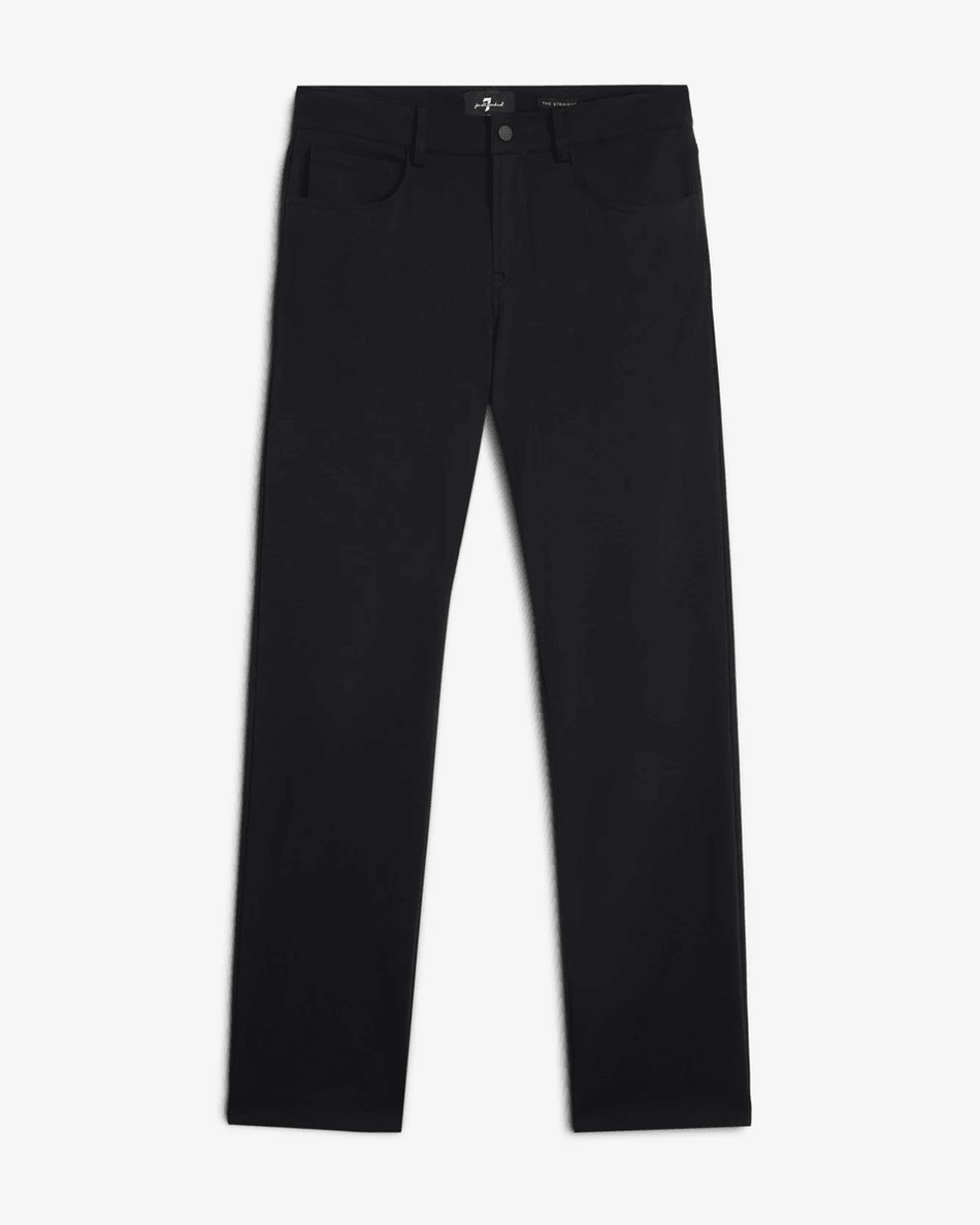 Elevate your wardrobe with the 7 For All Mankind Luxe Performance Knit Straight in Black Black. These straight-fit pants offer a sleek, tailored silhouette that effortlessly combines style and comfort. Perfect for any occasion, the versatile black wash ensures you always look polished.