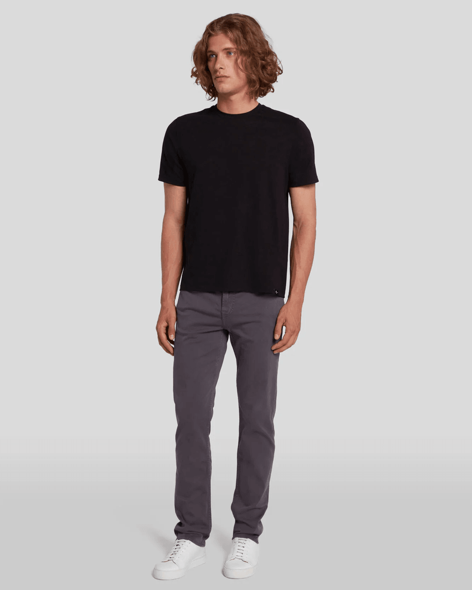 Elevate your denim game with the 7 For All Mankind Luxe Performance Plus Slimmy in Gunmetal. This slim-fit jean is designed to offer a tailored silhouette that flatters every body type. Experience the perfect blend of comfort and style with our innovative luxe performance denim.