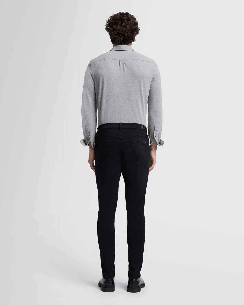 Elevate your wardrobe with the 7 For All Mankind Luxe Performance Plus Slimmy Tapered in Black. These jeans combine a sleek design with unparalleled comfort, making them a must-have for any modern man.