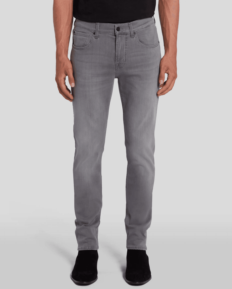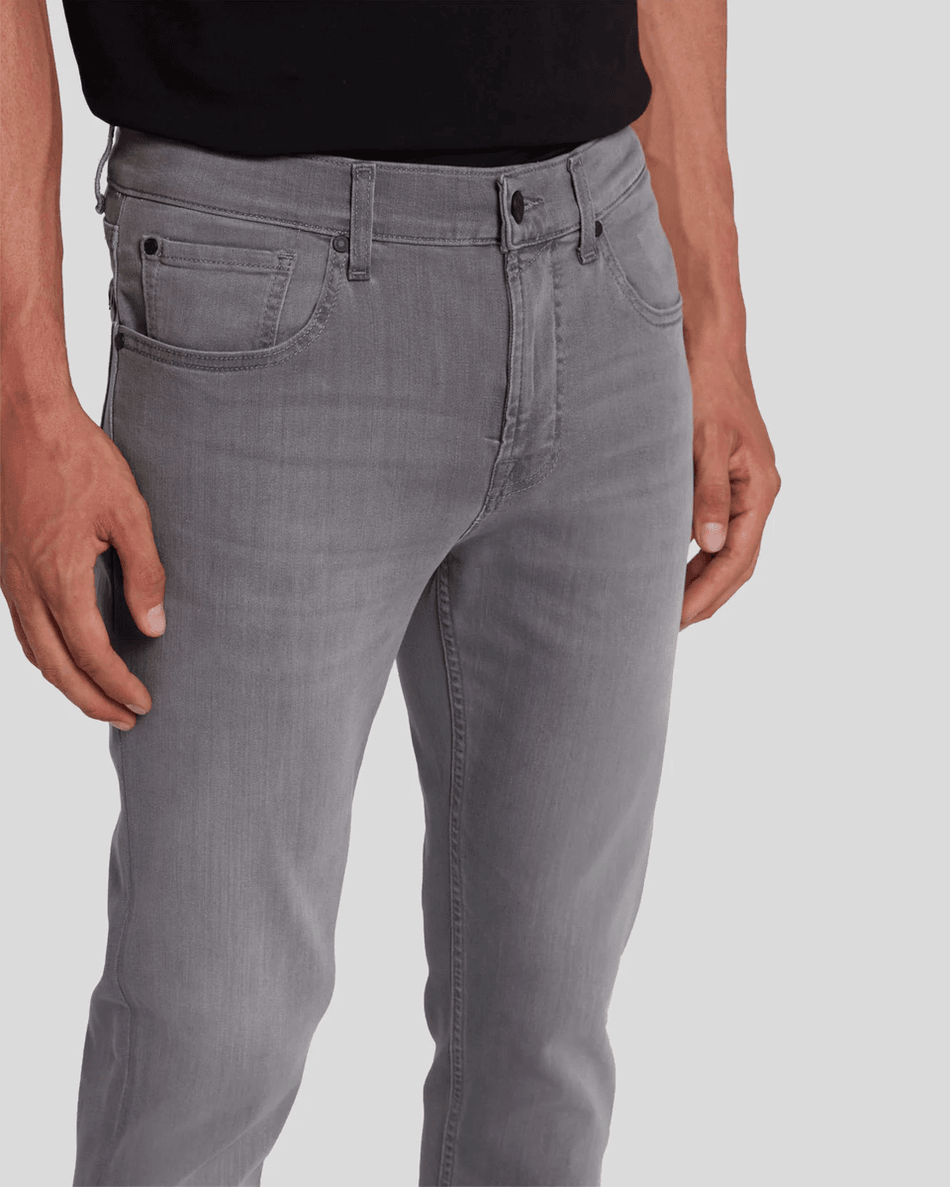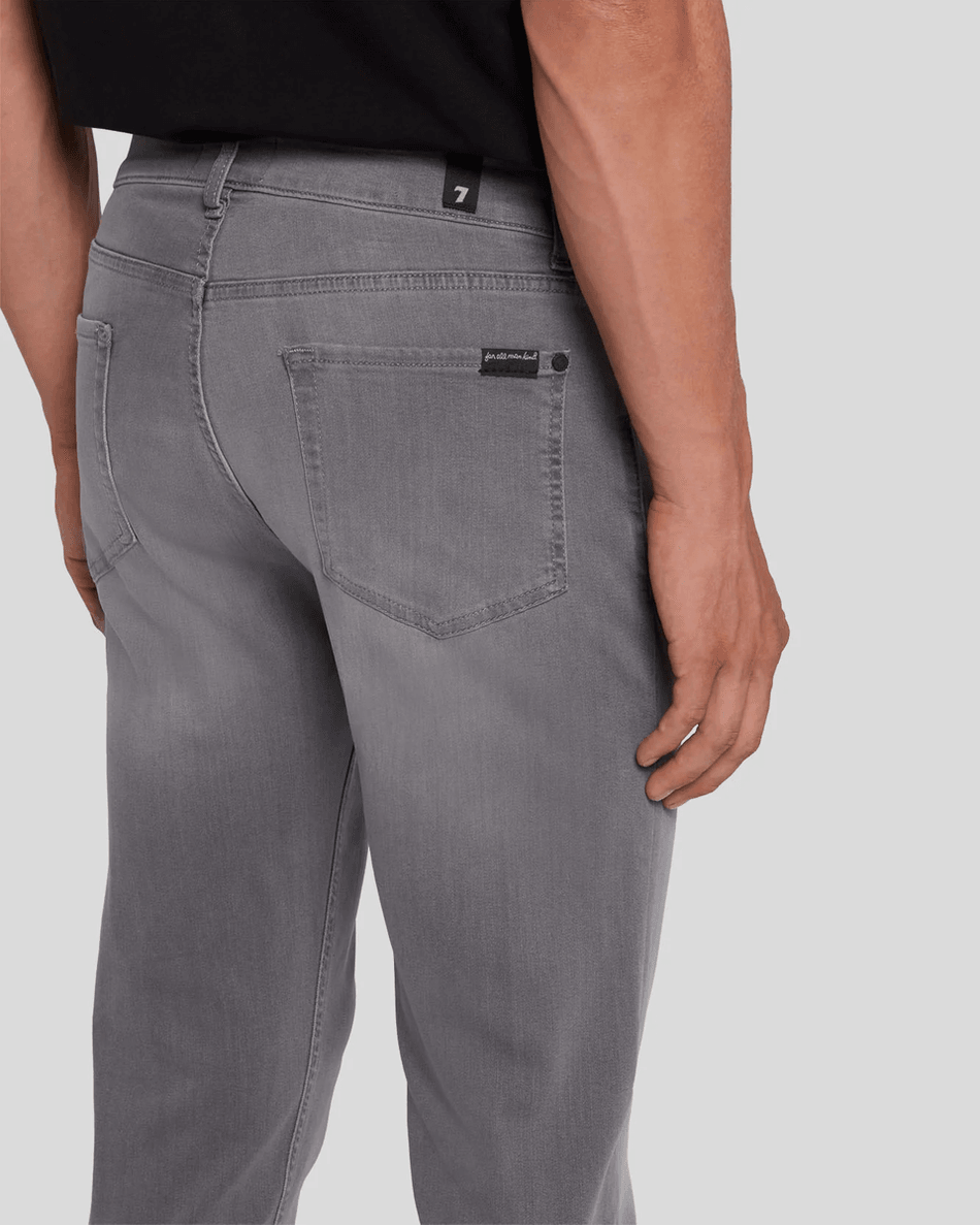 Experience unparalleled comfort and style with the 7 For All Mankind Luxe Performance Plus Slimmy Tapered in Grey. This innovative denim combines a silky-soft touch with exceptional stretch and recovery, making it the ultimate choice for modern men.