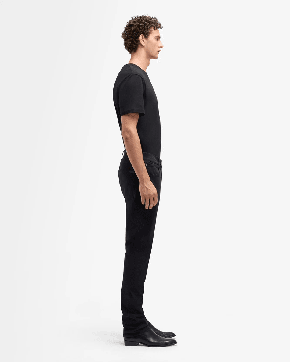 Elevate your wardrobe with the 7 For All Mankind Luxe Performance Sateen The Straight In Black Black. This modern yet classic straight fit jean provides a sleek look that flatters every body type. With a fit that runs parallel through the leg and sits just below the waist, these jeans offer a perfect combination of comfort and style.