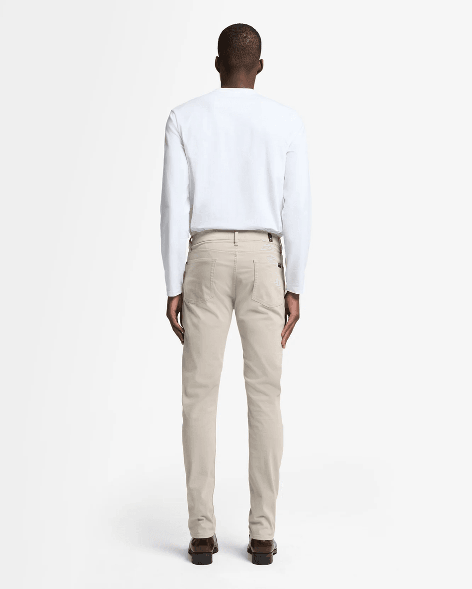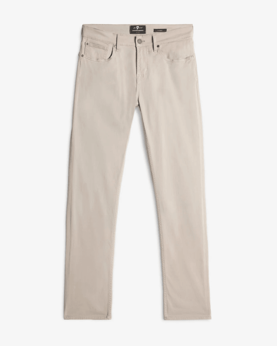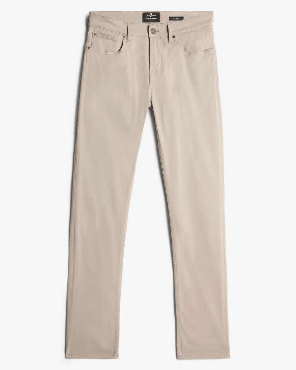 Discover the perfect blend of comfort and style with the 7 For All Mankind Luxe Performance Slimmy in Blade Blade. These slim-fit jeans feature a light khaki wash that effortlessly elevates your wardrobe, providing a sleek silhouette that flatters without feeling restrictive.